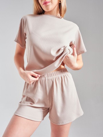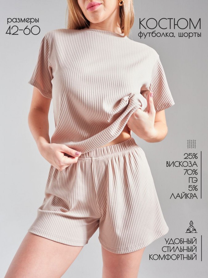 Домашний костюм в рубчик из нежной трикотажной ткани "лапша" — это выбор для тех, кто ценит комфорт в повседневной жизни. Пижама лапша состоит из футболки и шорт из лапши, которые подходят для любого типа фигуры благодаря своей универсальности. Изготовленный из качественной вискозы, этот костюм не только комфортен в носке, но и легок в уходе – он не мнется и не скатывается, сохраняя свежий вид даже после многократных стирок. Однотонная ткань пижама лапша приятно облегает фигуру, создавая элегантный силуэт и при этом мягко скрывая возможные недостатки. Шорты из лапши с эластичной резинкой обеспечат идеальную посадку без давления на талию, что делает этот костюм подходящим как для домашнего времяпрепровождения, так и для выхода на прогулку. Костюм женский летний - отличный подарок для девочки, подростка, маме и любимой женщине на праздник, день рождение.