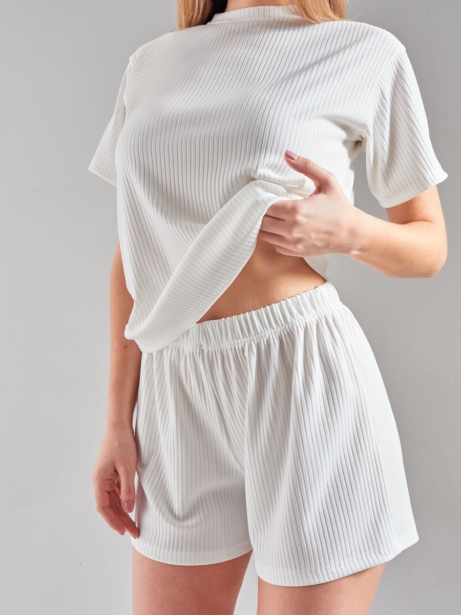 Домашний костюм в рубчик из нежной трикотажной ткани "лапша" — это выбор для тех, кто ценит комфорт в повседневной жизни. Пижама лапша состоит из футболки и шорт из лапши, которые подходят для любого типа фигуры благодаря своей универсальности. Изготовленный из качественной вискозы, этот костюм не только комфортен в носке, но и легок в уходе – он не мнется и не скатывается, сохраняя свежий вид даже после многократных стирок. Однотонная ткань пижама лапша приятно облегает фигуру, создавая элегантный силуэт и при этом мягко скрывая возможные недостатки. Шорты из лапши с эластичной резинкой обеспечат идеальную посадку без давления на талию, что делает этот костюм подходящим как для домашнего времяпрепровождения, так и для выхода на прогулку. Костюм женский летний - отличный подарок для девочки, подростка, маме и любимой женщине на праздник, день рождение.