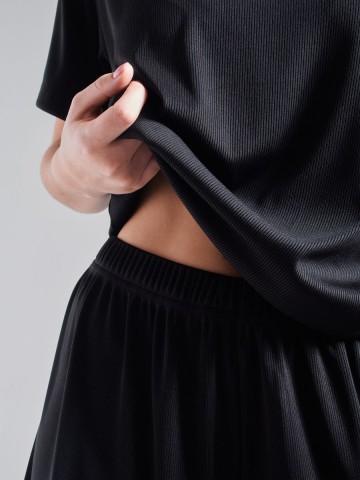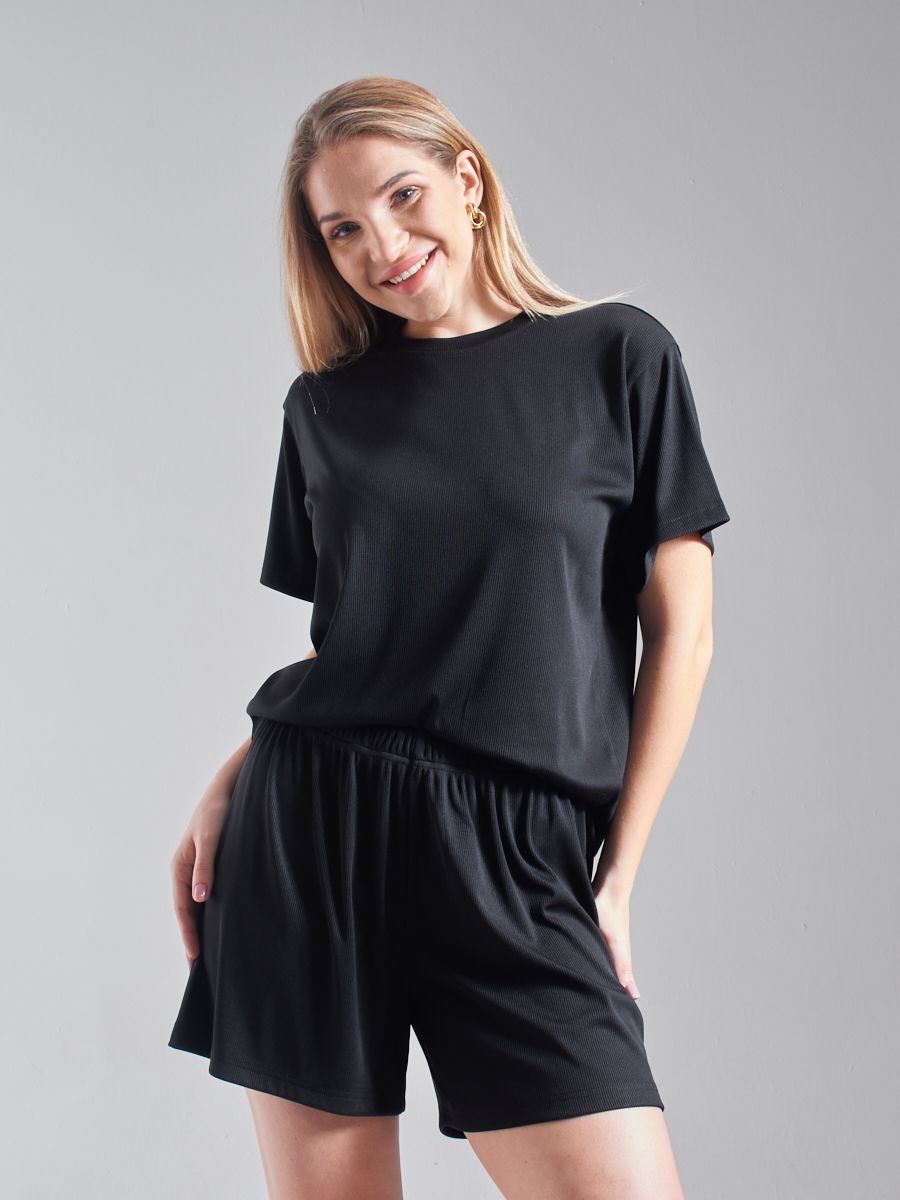 Домашний костюм в рубчик из нежной трикотажной ткани "лапша" — это выбор для тех, кто ценит комфорт в повседневной жизни. Пижама лапша состоит из футболки и шорт из лапши, которые подходят для любого типа фигуры благодаря своей универсальности. Изготовленный из качественной вискозы, этот костюм не только комфортен в носке, но и легок в уходе – он не мнется и не скатывается, сохраняя свежий вид даже после многократных стирок. Однотонная ткань пижама лапша приятно облегает фигуру, создавая элегантный силуэт и при этом мягко скрывая возможные недостатки. Шорты из лапши с эластичной резинкой обеспечат идеальную посадку без давления на талию, что делает этот костюм подходящим как для домашнего времяпрепровождения, так и для выхода на прогулку. Костюм женский летний - отличный подарок для девочки, подростка, маме и любимой женщине на праздник, день рождение.