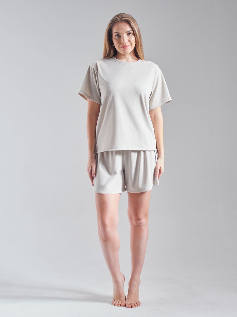 Домашний костюм в рубчик из нежной трикотажной ткани "лапша" — это выбор для тех, кто ценит комфорт в повседневной жизни. Пижама лапша состоит из футболки и шорт из лапши, которые подходят для любого типа фигуры благодаря своей универсальности. Изготовленный из качественной вискозы, этот костюм не только комфортен в носке, но и легок в уходе – он не мнется и не скатывается, сохраняя свежий вид даже после многократных стирок. Однотонная ткань пижама лапша приятно облегает фигуру, создавая элегантный силуэт и при этом мягко скрывая возможные недостатки. Шорты из лапши с эластичной резинкой обеспечат идеальную посадку без давления на талию, что делает этот костюм подходящим как для домашнего времяпрепровождения, так и для выхода на прогулку. Костюм женский летний - отличный подарок для девочки, подростка, маме и любимой женщине на праздник, день рождение.