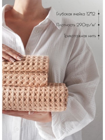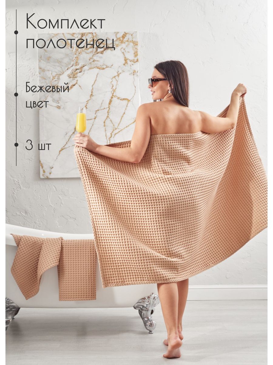 Комплект банных полотенец из крупной вафельной клетки, размером 140х90 1 шт и 50х65 2 шт является идеальным выбором для ванны или душа. Полотенца изготовлены из высококачественного 100% хлопка с добавлением трикотажной нити премиум качества. Структура вафельной клетки позволяет полотенцу быть легким и хорошо вентилируемым, сокращая время высыхания. Полотенце обладает отличными абсорбирующими свойствами, быстро и бережно впитывает влагу, оставляя кожу сухой и свежей. Размер 140x90 сантиметров обеспечивает достаточное покрытие для обертывания всего тела после ванны или душа. Кроме того, полотенце легко стирается и поддается длительной эксплуатации без потери качества и цвета, при соблюдений рекомендации по стирке и сушке изделий. Банное полотенце из крупной вафельной клетки будет идеальным дополнением к интерьеру вашей ванной комнаты и создаст ощущение комфорта и роскоши во время вашей водных процедур. Банное полотенце упаковано в сумку на молнии, которое отлично подойдет для подарка близким и коллегам, подарок для мамы, подарок для девушки, подарок для бабушки. Универсальный подарок на каждый день, подарок на День рождение, подарок на 8 Марта, подарок на 14 февраля и подарок на День святого Валентина, подарок на новоселье, для мужчины на 23 февраля. Порадуйте своих близких, они будут приятно удивлены шикарному подарку.
