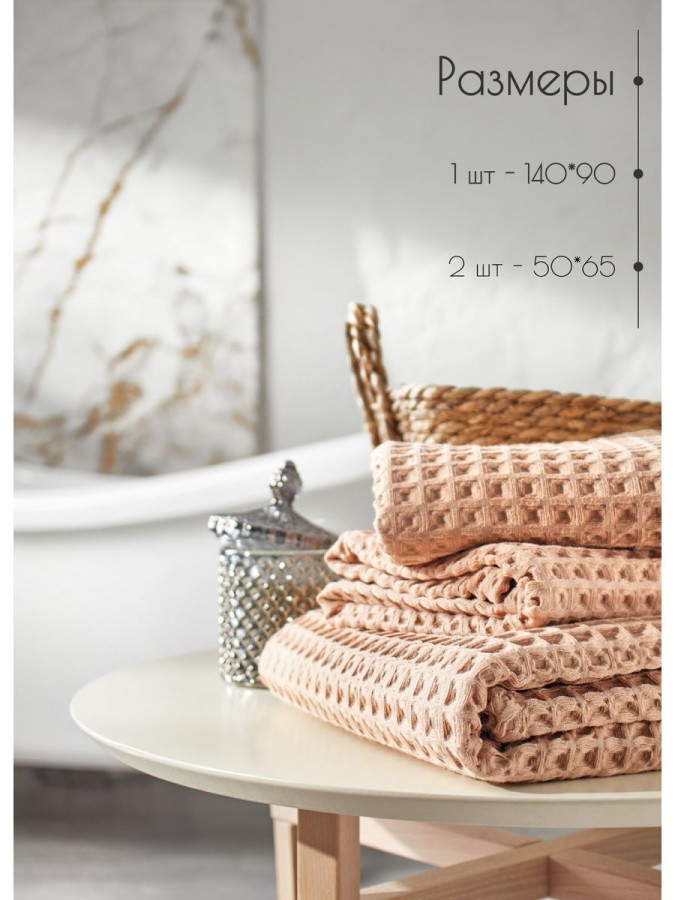 Набор вафельные полотенца 50х65-2шт, 90х140 -1шт хлопок