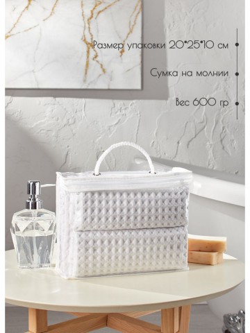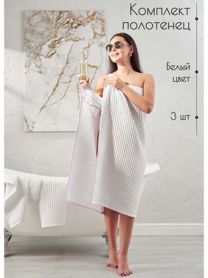 Комплект банных полотенец из крупной вафельной клетки, размером 140х90 1 шт и 50х65 2 шт является идеальным выбором для ванны или душа. Полотенца изготовлены из высококачественного 100% хлопка с добавлением трикотажной нити премиум качества. Структура вафельной клетки позволяет полотенцу быть легким и хорошо вентилируемым, сокращая время высыхания. Полотенце обладает отличными абсорбирующими свойствами, быстро и бережно впитывает влагу, оставляя кожу сухой и свежей. Размер 140x90 сантиметров обеспечивает достаточное покрытие для обертывания всего тела после ванны или душа. Кроме того, полотенце легко стирается и поддается длительной эксплуатации без потери качества и цвета, при соблюдений рекомендации по стирке и сушке изделий. Банное полотенце из крупной вафельной клетки будет идеальным дополнением к интерьеру вашей ванной комнаты и создаст ощущение комфорта и роскоши во время вашей водных процедур. Банное полотенце упаковано в сумку на молнии, которое отлично подойдет для подарка близким и коллегам, подарок для мамы, подарок для девушки, подарок для бабушки. Универсальный подарок на каждый день, подарок на День рождение, подарок на 8 Марта, подарок на 14 февраля и подарок на День святого Валентина, подарок на новоселье, для мужчины на 23 февраля. Порадуйте своих близких, они будут приятно удивлены шикарному подарку.