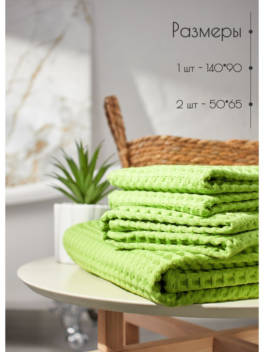 Набор вафельные полотенца 50х65-2шт, 90х140 -1шт хлопок