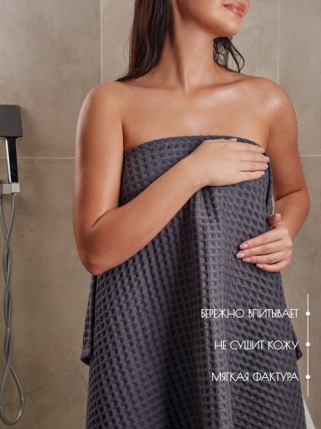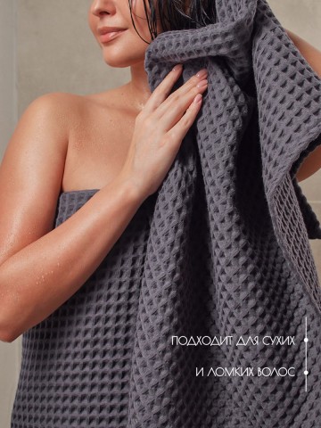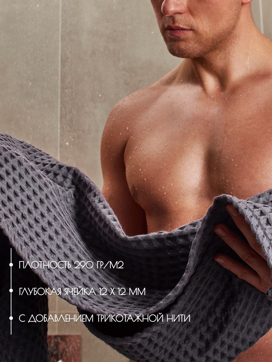По вашим просьбам мы произвели банное полотенце размером 110х65, это идеальный размер для головы и сушки волос, отлично подходит в качестве чалмы. Черное банное полотенце. Полотенце изготовлено из высококачественного 100% хлопка с добавлением трикотажной нити премиум качества. Структура вафельной клетки позволяет полотенцу быть легким и хорошо вентилируемым, сокращая время высыхания. Полотенце обладает отличными абсорбирующими свойствами, быстро и бережно впитывает влагу, оставляя кожу сухой и свежей. Кроме того, полотенце легко стирается и поддается длительной эксплуатации без потери качества и цвета, при соблюдений рекомендации по стирке и сушки. Банное полотенце из крупной вафельной клетки будет идеальным дополнением к интерьеру вашей ванной комнаты и создаст ощущение комфорта и роскоши. Вы можете приобрести полотенца разного размера и собрать свой комплект. Банное полотенце упаковано в сумку на молнии, которое отлично подойдет для подарка близким и коллегам, подарок для мамы, подарок для девушки, подарок для бабушки. Универсальный подарок на каждый день, подарок на День рождение, подарок на 8 Марта, подарок на 14 февраля и подарок на День святого Валентина, подарок на новоселье, для мужчины на 23 февраля. Порадуйте своих близких, они будут приятно удивлены шикарному подарку.
