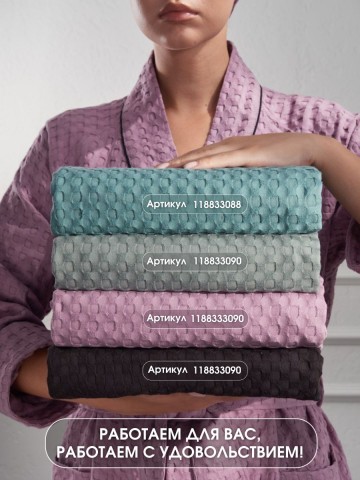 Набор полотенец их двух штук, размером 150 см*100 см и 100 см*50 см. Однотонное полотенце прямоугольной формы выполнено из 100% хлопка, оно легкое и дышащее, гипоаллергенное, дополнено петелькой, чтобы вешать изделие на крючок. Плотность ткани 200 г/кв.м, перед применением рекомендуем полотенце прополоскать и высушить естественным способом, после чего его структура станет более объемной, а само полотенце тактильно приятным. Текстильное полотно хорошо впитывает воду, подходит для промакивания лица и волос, всего тела после умывания или купания. Большое полотенце высокой впитываемости незаменимо после занятий спортом и фитнесом, его берут с собой в баню, хамам, сауну, в бассейн и аквапарк, на пляж у моря, для отдыха на природе у реки или озера: тонкое полотенце легко помещается даже в дамскую сумочку или рюкзак ребенка. Полотенце активно используется, как спортивное или пляжное, туристическое полотенце, дома и на даче. Легкое и нежное, мягкое фактурное полотенце - отличный подарок всем: взрослым и детям любого возраста, близким и друзьям. Рекомендации по уходу за изделием: полотенце можно стирать в стиральной машинке в режиме бережной стирки или режима «Хлопок» при температуре не выше 40 градусов. Изделие рекомендуется стирать отдельно от махровых вещей, чтобы сохранить эстетику полотенец. При стирке может быть незначительная усадка за счет того, что вафельное полотно приобретает более выраженную глубину ячейки. Банное полотенце упаковано в сумку на молнии, готовое решение для подарока на День рождение, подарок на 8 Марта, подарок на 14 февраля и подарок на День святого Валентина, подарок на новоселье, для мужчины на 23 февраля. Порадуйте своих близких, они будут приятно удивлены шикарному подарку. Полотенца от компании MONOTON-Текстиль будет идеальным дополнением к интерьеру вашей ванной комнаты и создаст ощущение комфорта.
