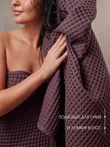 По вашим просьбам мы произвели банное полотенце размером 110х65, это идеальный размер для головы и сушки волос, отлично подходит в качестве чалмы. Черное банное полотенце. Полотенце изготовлено из высококачественного 100% хлопка с добавлением трикотажной нити премиум качества. Структура вафельной клетки позволяет полотенцу быть легким и хорошо вентилируемым, сокращая время высыхания. Полотенце обладает отличными абсорбирующими свойствами, быстро и бережно впитывает влагу, оставляя кожу сухой и свежей. Кроме того, полотенце легко стирается и поддается длительной эксплуатации без потери качества и цвета, при соблюдений рекомендации по стирке и сушки. Банное полотенце из крупной вафельной клетки будет идеальным дополнением к интерьеру вашей ванной комнаты и создаст ощущение комфорта и роскоши. Вы можете приобрести полотенца разного размера и собрать свой комплект. Банное полотенце упаковано в сумку на молнии, которое отлично подойдет для подарка близким и коллегам, подарок для мамы, подарок для девушки, подарок для бабушки. Универсальный подарок на каждый день, подарок на День рождение, подарок на 8 Марта, подарок на 14 февраля и подарок на День святого Валентина, подарок на новоселье, для мужчины на 23 февраля. Порадуйте своих близких, они будут приятно удивлены шикарному подарку.