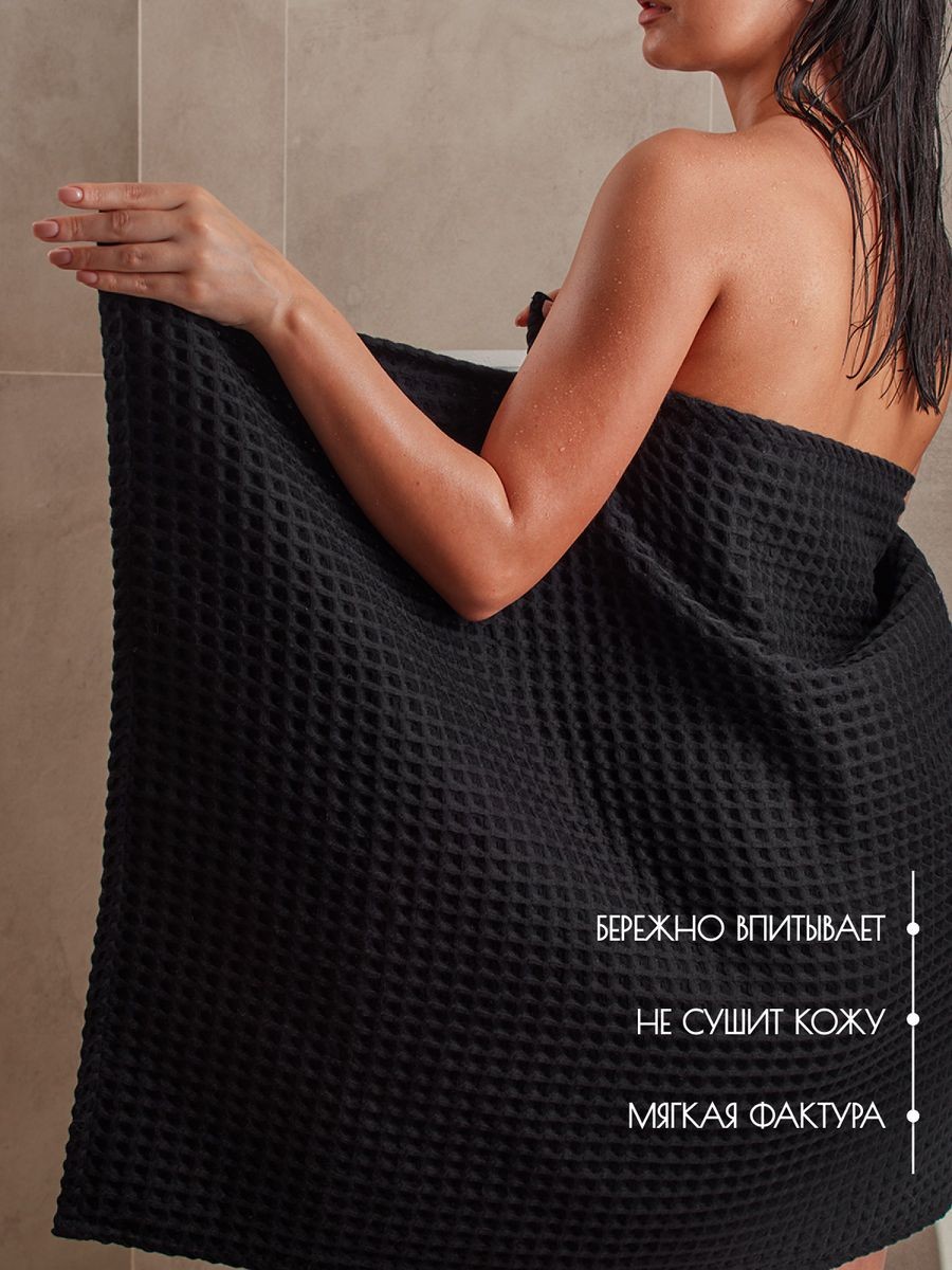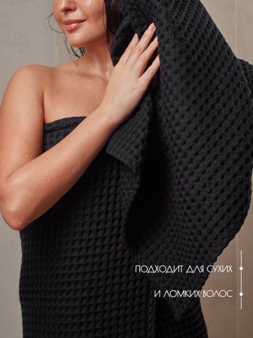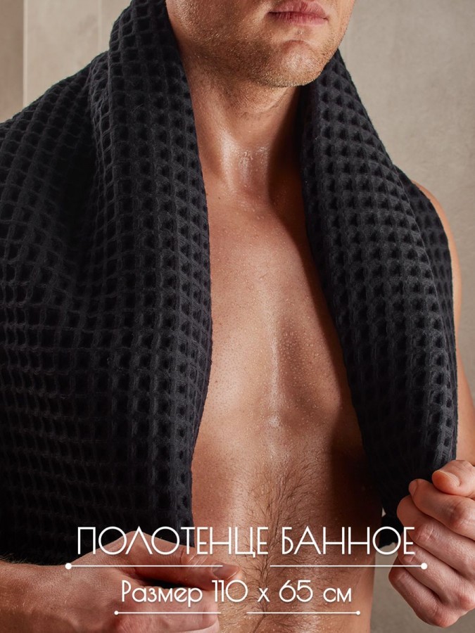 По вашим просьбам мы произвели банное полотенце размером 110х65, это идеальный размер для головы и сушки волос, отлично подходит в качестве чалмы. Черное банное полотенце. Полотенце изготовлено из высококачественного 100% хлопка с добавлением трикотажной нити премиум качества. Структура вафельной клетки позволяет полотенцу быть легким и хорошо вентилируемым, сокращая время высыхания. Полотенце обладает отличными абсорбирующими свойствами, быстро и бережно впитывает влагу, оставляя кожу сухой и свежей. Кроме того, полотенце легко стирается и поддается длительной эксплуатации без потери качества и цвета, при соблюдений рекомендации по стирке и сушки. Банное полотенце из крупной вафельной клетки будет идеальным дополнением к интерьеру вашей ванной комнаты и создаст ощущение комфорта и роскоши. Вы можете приобрести полотенца разного размера и собрать свой комплект. Банное полотенце упаковано в сумку на молнии, которое отлично подойдет для подарка близким и коллегам, подарок для мамы, подарок для девушки, подарок для бабушки. Универсальный подарок на каждый день, подарок на День рождение, подарок на 8 Марта, подарок на 14 февраля и подарок на День святого Валентина, подарок на новоселье, для мужчины на 23 февраля. Порадуйте своих близких, они будут приятно удивлены шикарному подарку.