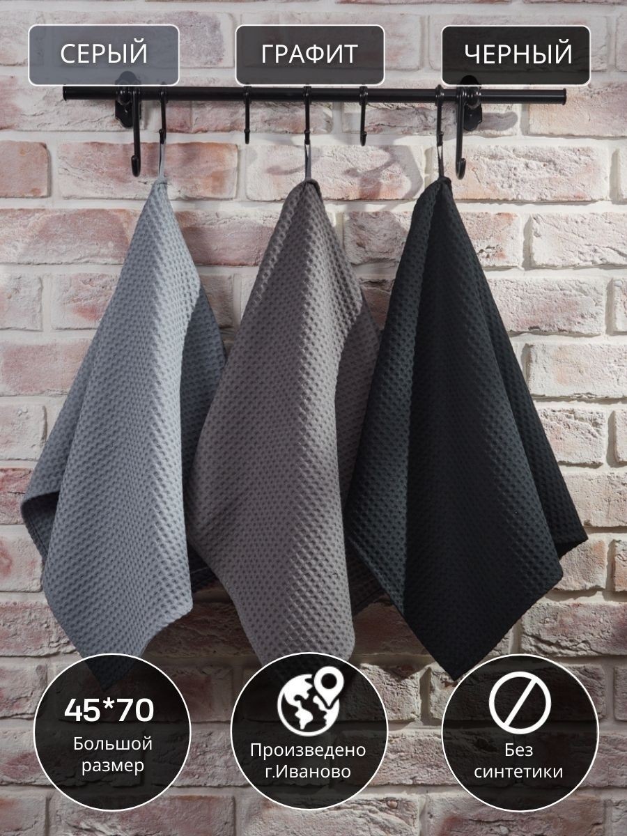 Набор вафельных полотенец из трех штук от компании MONOTON-Текстиль представлен в стильных сочетаниях топовых оттенков, которые украсят вашу кухню. Быстросохнущий аксессуар выполнен из 100% хлопка в размере 45 х 70 см. Хлопковые полотенца отлично впитывают и быстро сохнут, модель отличается увеличенной плотностью (240 г/кв.м.) и универсальным размером квадратной ячейки (7 х 7 мм). Тактильно приятные, безворсовые полотенчики удобнее, чем салфетки, большие тряпки или маленькие тряпочки: незаменимый кухонный атрибут всегда под рукой, если нужно вытереть руки или смахнуть крошки со стола. По середине длинной стороны имеются цветные петельки из натурального хлопка, для удобства подвешивания, они исполнены в тон изделия. Стильные хлопковые полотенчики представлены в красивых цветовых сочетаниях. Со вкусом подобранные сочетания и нежная палитра украсят вашу кухню, станут приятной деталью интерьера для кухни, которая будет радовать вас каждый день. Универсальные многоразовые полотенца с удобной петлей отлично подойдут для ежедневной уборки, помогут очистить столовые приборы, стекло и посуду, убрать ванну и протереть от воды душевую кабину. Вафельные полотенца с тактильно приятной клеткой подойдут для рук и лица, их можно повесить в ванной около зеркала. Домашние или дачные, удобные аксессуары в клетку для наведения чистоты во всем доме подойдут к любому интерьеру, гармоничное сочетание цветов и нежный лаконичный декор понравятся взрослым и детям, женщинам и мужчинам, подросткам, девочкам и мальчикам. Качественный текстиль подойдет для всей семьи: для родителей: мамы и папы, бабушки. Стильные и уютные полотенчики в комплекте из трех предметов разных цветов станут хорошим подарком для любимой девушки, для жены, для мамы, сестры или подруги на Новый год или Рождество, 8 Марта или День святого Валентина, а также мужчине на 23 февраля. Полотенца кухонные станут прекрасным подарком на новоселье, свадьбу или лаконичным декором или прекрасным дополнением интерьера любой кухни. Сделано в России, производство г. Иваново, текстиль Иваново, Ивановский текстиль. У нас есть акции и распродажи, вы можете купить наши товары в подарок со скидкой!