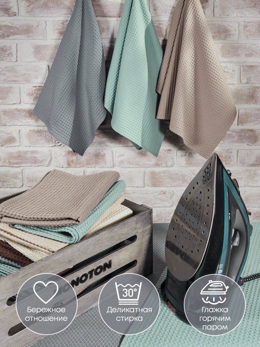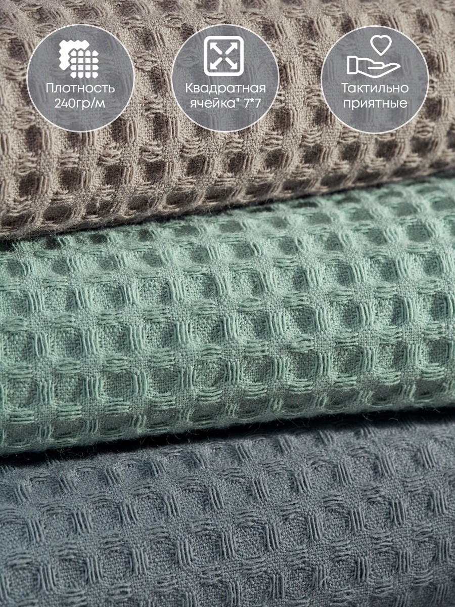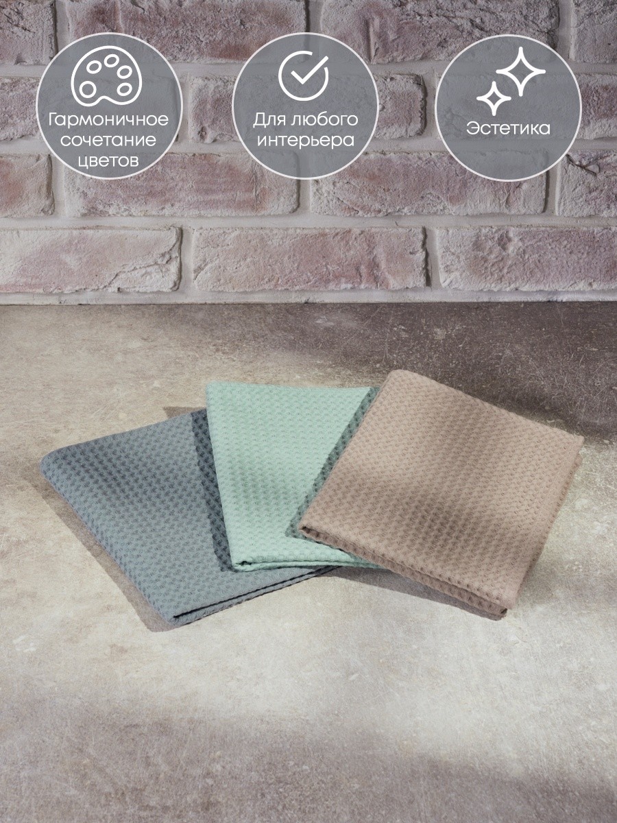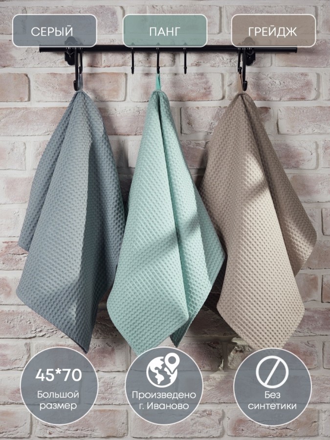 Набор вафельных полотенец из трех штук от компании MONOTON-Текстиль представлен в стильных сочетаниях топовых оттенков, которые украсят вашу кухню. Быстросохнущий аксессуар выполнен из 100% хлопка в размере 45 х 70 см. Хлопковые полотенца отлично впитывают и быстро сохнут, модель отличается увеличенной плотностью (240 г/кв.м.) и универсальным размером квадратной ячейки (7 х 7 мм). Тактильно приятные, безворсовые полотенчики удобнее, чем салфетки, большие тряпки или маленькие тряпочки: незаменимый кухонный атрибут всегда под рукой, если нужно вытереть руки или смахнуть крошки со стола. По середине длинной стороны имеются цветные петельки из натурального хлопка, для удобства подвешивания, они исполнены в тон изделия. Стильные хлопковые полотенчики представлены в красивых цветовых сочетаниях. Со вкусом подобранные сочетания и нежная палитра украсят вашу кухню, станут приятной деталью интерьера для кухни, которая будет радовать вас каждый день. Универсальные многоразовые полотенца с удобной петлей отлично подойдут для ежедневной уборки, помогут очистить столовые приборы, стекло и посуду, убрать ванну и протереть от воды душевую кабину. Вафельные полотенца с тактильно приятной клеткой подойдут для рук и лица, их можно повесить в ванной около зеркала. Домашние или дачные, удобные аксессуары в клетку для наведения чистоты во всем доме подойдут к любому интерьеру, гармоничное сочетание цветов и нежный лаконичный декор понравятся взрослым и детям, женщинам и мужчинам, подросткам, девочкам и мальчикам. Качественный текстиль подойдет для всей семьи: для родителей: мамы и папы, бабушки. Стильные и уютные полотенчики в комплекте из трех предметов разных цветов станут хорошим подарком для любимой девушки, для жены, для мамы, сестры или подруги на Новый год или Рождество, 8 Марта или День святого Валентина, а также мужчине на 23 февраля. Полотенца кухонные станут прекрасным подарком на новоселье, свадьбу или лаконичным декором или прекрасным дополнением интерьера любой кухни. Сделано в России, производство г. Иваново, текстиль Иваново, Ивановский текстиль. У нас есть акции и распродажи, вы можете купить наши товары в подарок со скидкой!