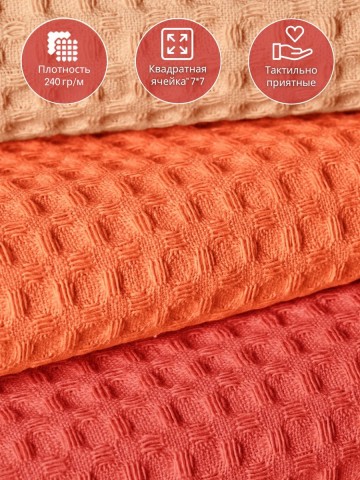 Набор вафельных полотенец из трех штук от компании MONOTON-Текстиль представлен в стильных сочетаниях топовых оттенков, которые украсят вашу кухню. Быстросохнущий аксессуар выполнен из 100% хлопка в размере 45 х 70 см. Хлопковые полотенца отлично впитывают и быстро сохнут, модель отличается увеличенной плотностью (240 г/кв.м.) и универсальным размером квадратной ячейки (7 х 7 мм). Тактильно приятные, безворсовые полотенчики удобнее, чем салфетки, большие тряпки или маленькие тряпочки: незаменимый кухонный атрибут всегда под рукой, если нужно вытереть руки или смахнуть крошки со стола. По середине длинной стороны имеются цветные петельки из натурального хлопка, для удобства подвешивания, они исполнены в тон изделия. Стильные хлопковые полотенчики представлены в красивых цветовых сочетаниях. Со вкусом подобранные сочетания и нежная палитра украсят вашу кухню, станут приятной деталью интерьера для кухни, которая будет радовать вас каждый день. Универсальные многоразовые полотенца с удобной петлей отлично подойдут для ежедневной уборки, помогут очистить столовые приборы, стекло и посуду, убрать ванну и протереть от воды душевую кабину. Вафельные полотенца с тактильно приятной клеткой подойдут для рук и лица, их можно повесить в ванной около зеркала. Домашние или дачные, удобные аксессуары в клетку для наведения чистоты во всем доме подойдут к любому интерьеру, гармоничное сочетание цветов и нежный лаконичный декор понравятся взрослым и детям, женщинам и мужчинам, подросткам, девочкам и мальчикам. Качественный текстиль подойдет для всей семьи: для родителей: мамы и папы, бабушки. Стильные и уютные полотенчики в комплекте из трех предметов разных цветов станут хорошим подарком для любимой девушки, для жены, для мамы, сестры или подруги на Новый год или Рождество, 8 Марта или День святого Валентина, а также мужчине на 23 февраля. Полотенца кухонные станут прекрасным подарком на новоселье, свадьбу или лаконичным декором или прекрасным дополнением интерьера любой кухни. Сделано в России, производство г. Иваново, текстиль Иваново, Ивановский текстиль. У нас есть акции и распродажи, вы можете купить наши товары в подарок со скидкой!