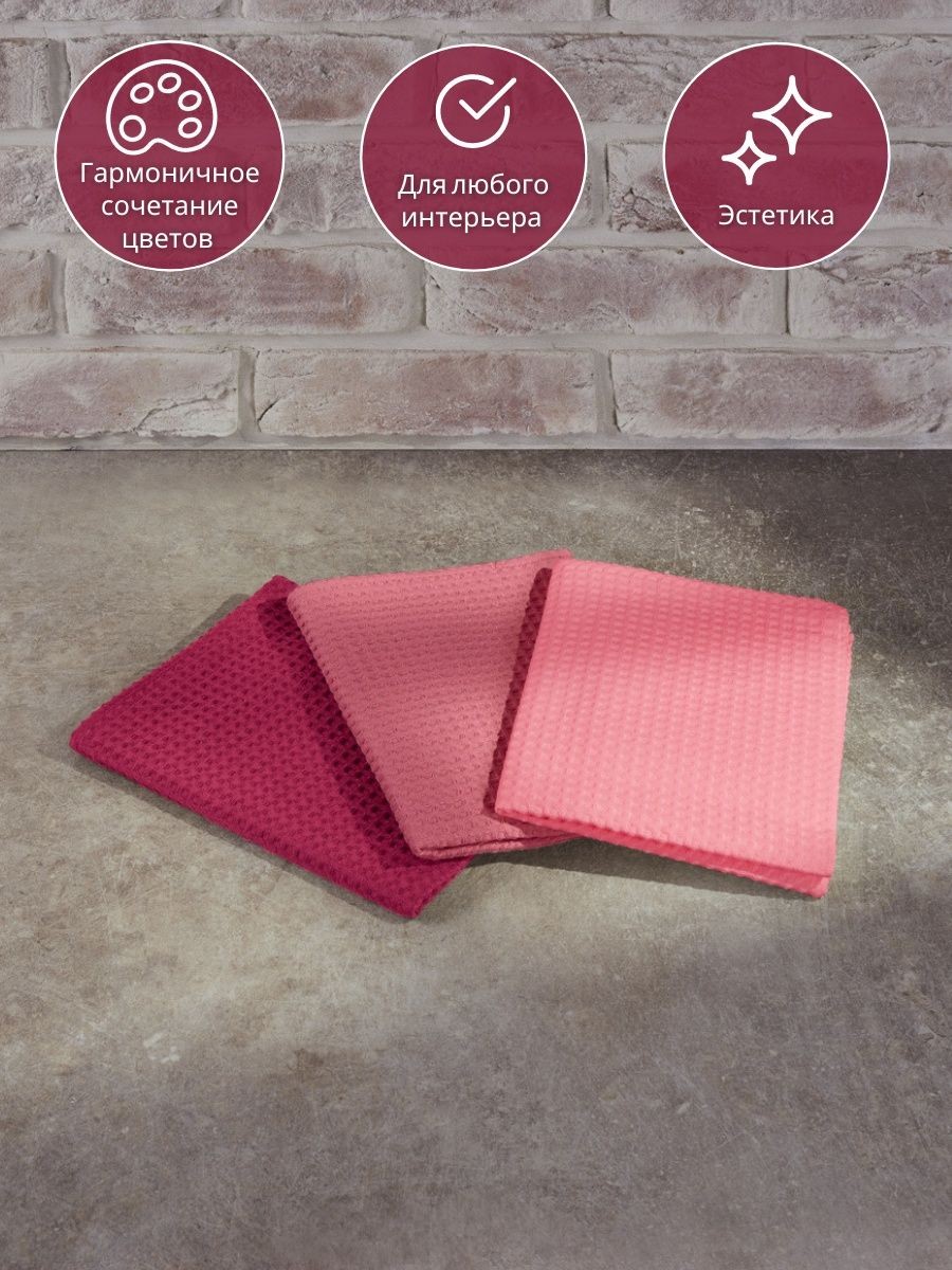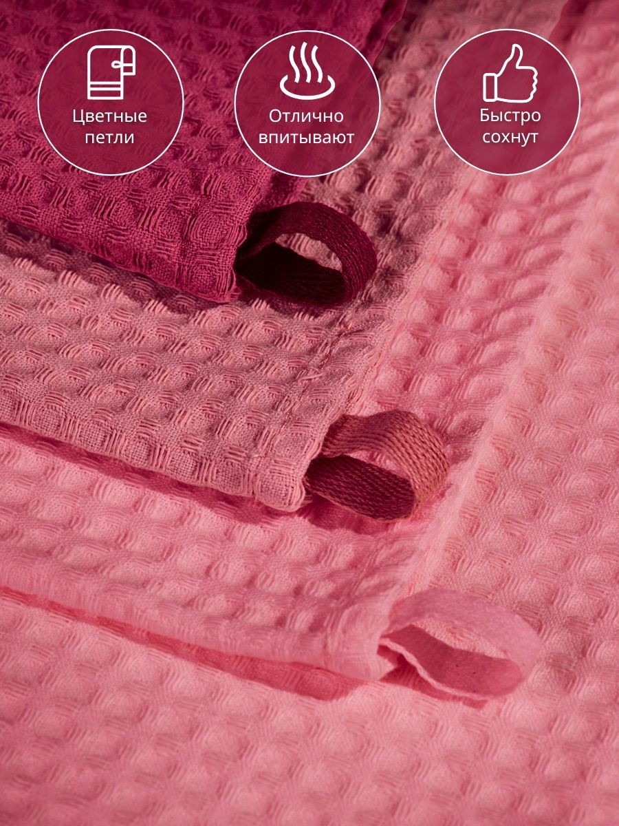 Набор вафельных полотенец из трех штук от компании MONOTON-Текстиль представлен в стильных сочетаниях топовых оттенков, которые украсят вашу кухню. Быстросохнущий аксессуар выполнен из 100% хлопка в размере 45 х 70 см. Хлопковые полотенца отлично впитывают и быстро сохнут, модель отличается увеличенной плотностью (240 г/кв.м.) и универсальным размером квадратной ячейки (7 х 7 мм). Тактильно приятные, безворсовые полотенчики удобнее, чем салфетки, большие тряпки или маленькие тряпочки: незаменимый кухонный атрибут всегда под рукой, если нужно вытереть руки или смахнуть крошки со стола. По середине длинной стороны имеются цветные петельки из натурального хлопка, для удобства подвешивания, они исполнены в тон изделия. Стильные хлопковые полотенчики представлены в красивых цветовых сочетаниях. Со вкусом подобранные сочетания и нежная палитра украсят вашу кухню, станут приятной деталью интерьера для кухни, которая будет радовать вас каждый день. Универсальные многоразовые полотенца с удобной петлей отлично подойдут для ежедневной уборки, помогут очистить столовые приборы, стекло и посуду, убрать ванну и протереть от воды душевую кабину. Вафельные полотенца с тактильно приятной клеткой подойдут для рук и лица, их можно повесить в ванной около зеркала. Домашние или дачные, удобные аксессуары в клетку для наведения чистоты во всем доме подойдут к любому интерьеру, гармоничное сочетание цветов и нежный лаконичный декор понравятся взрослым и детям, женщинам и мужчинам, подросткам, девочкам и мальчикам. Качественный текстиль подойдет для всей семьи: для родителей: мамы и папы, бабушки. Стильные и уютные полотенчики в комплекте из трех предметов разных цветов станут хорошим подарком для любимой девушки, для жены, для мамы, сестры или подруги на Новый год или Рождество, 8 Марта или День святого Валентина, а также мужчине на 23 февраля. Полотенца кухонные станут прекрасным подарком на новоселье, свадьбу или лаконичным декором или прекрасным дополнением интерьера любой кухни. Сделано в России, производство г. Иваново, текстиль Иваново, Ивановский текстиль. У нас есть акции и распродажи, вы можете купить наши товары в подарок со скидкой!