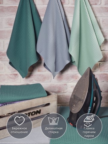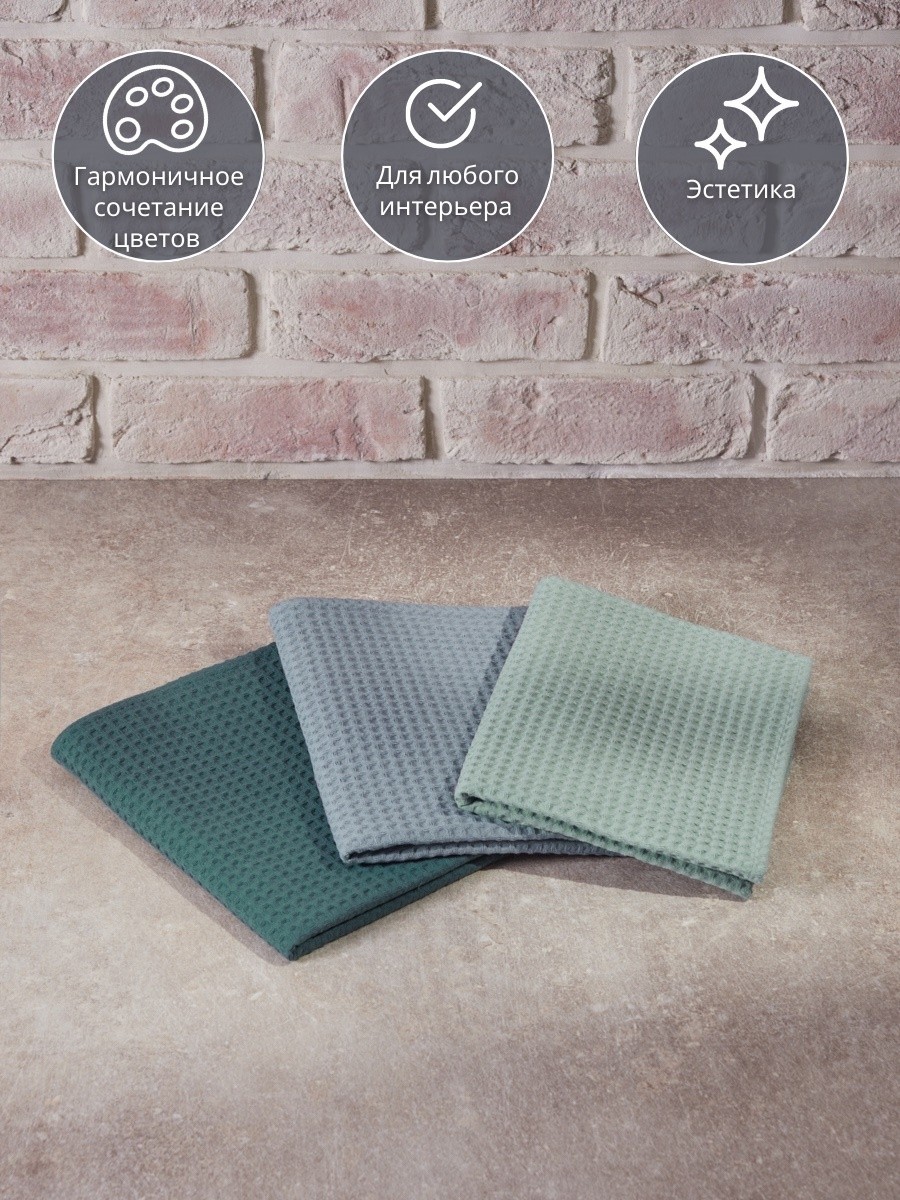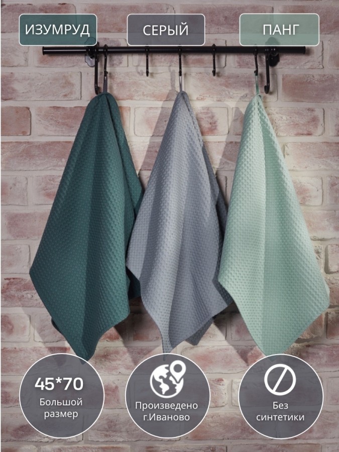 Набор вафельных полотенец из трех штук от компании MONOTON-Текстиль представлен в стильных сочетаниях топовых оттенков, которые украсят вашу кухню. Быстросохнущий аксессуар выполнен из 100% хлопка в размере 45 х 70 см. Хлопковые полотенца отлично впитывают и быстро сохнут, модель отличается увеличенной плотностью (240 г/кв.м.) и универсальным размером квадратной ячейки (7 х 7 мм). Тактильно приятные, безворсовые полотенчики удобнее, чем салфетки, большие тряпки или маленькие тряпочки: незаменимый кухонный атрибут всегда под рукой, если нужно вытереть руки или смахнуть крошки со стола. По середине длинной стороны имеются цветные петельки из натурального хлопка, для удобства подвешивания, они исполнены в тон изделия. Стильные хлопковые полотенчики представлены в красивых цветовых сочетаниях. Со вкусом подобранные сочетания и нежная палитра украсят вашу кухню, станут приятной деталью интерьера для кухни, которая будет радовать вас каждый день. Универсальные многоразовые полотенца с удобной петлей отлично подойдут для ежедневной уборки, помогут очистить столовые приборы, стекло и посуду, убрать ванну и протереть от воды душевую кабину. Вафельные полотенца с тактильно приятной клеткой подойдут для рук и лица, их можно повесить в ванной около зеркала. Домашние или дачные, удобные аксессуары в клетку для наведения чистоты во всем доме подойдут к любому интерьеру, гармоничное сочетание цветов и нежный лаконичный декор понравятся взрослым и детям, женщинам и мужчинам, подросткам, девочкам и мальчикам. Качественный текстиль подойдет для всей семьи: для родителей: мамы и папы, бабушки. Стильные и уютные полотенчики в комплекте из трех предметов разных цветов станут хорошим подарком для любимой девушки, для жены, для мамы, сестры или подруги на Новый год или Рождество, 8 Марта или День святого Валентина, а также мужчине на 23 февраля. Полотенца кухонные станут прекрасным подарком на новоселье, свадьбу или лаконичным декором или прекрасным дополнением интерьера любой кухни. Сделано в России, производство г. Иваново, текстиль Иваново, Ивановский текстиль. У нас есть акции и распродажи, вы можете купить наши товары в подарок со скидкой!