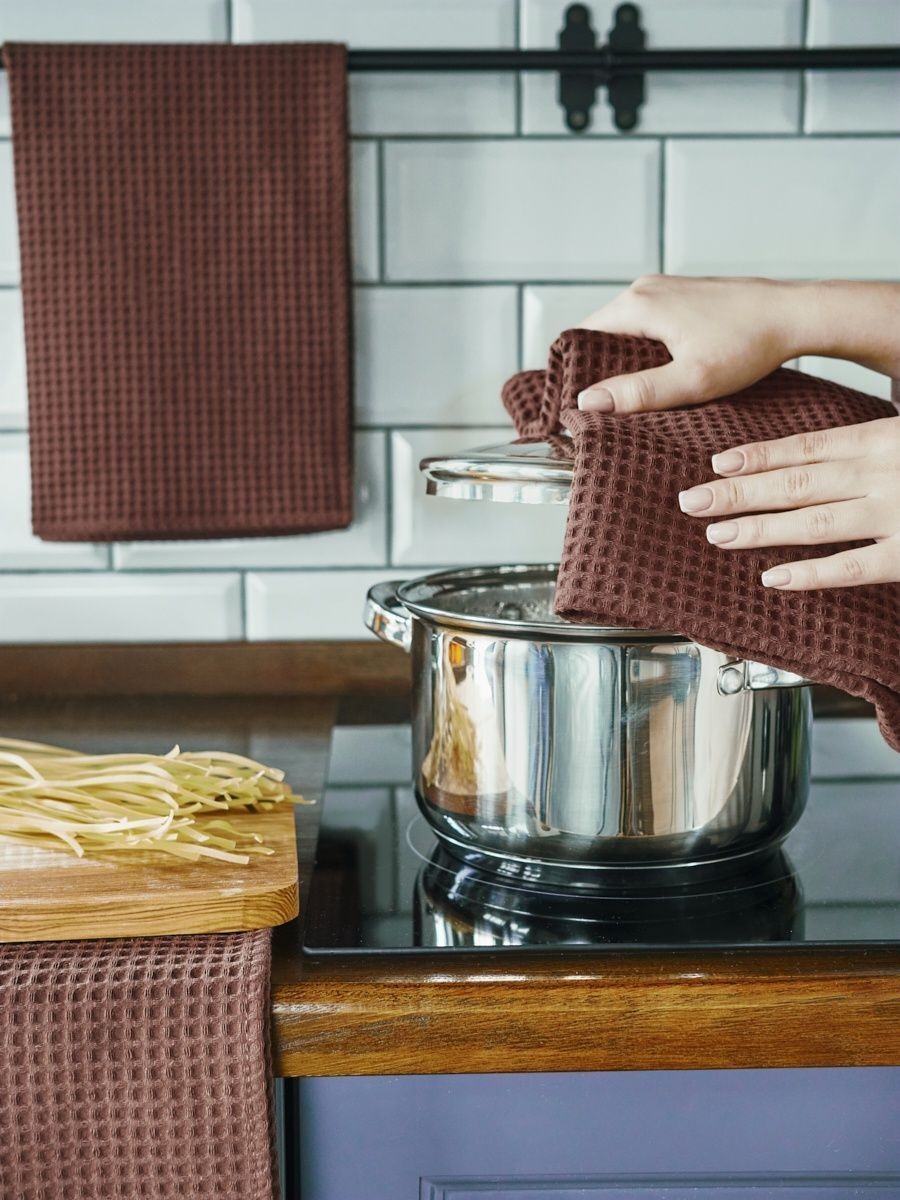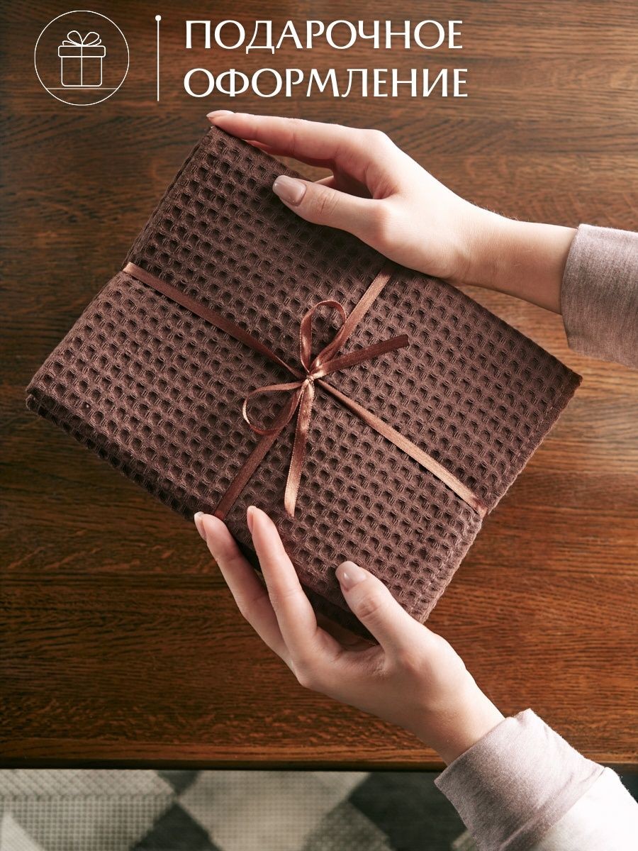 Комплект кухонных полотенец коричневого цвета большого размера 45х70см из 3 шт, из натурального хлопка, с плотностью ткани 240 г/м² и размером ячейки 7 мм х 7 мм. Эти полотенца обладают отличной впитывающей способностью, что делает их идеальным выбором для ухода за посудой, поверхностями и руками как в кухне, так и в ванной комнате. Стильные однотонные цвета подойдут для любого интерьера, придавая уют и функциональность. Каждое полотенце имеет цветные петельки из натурального хлопка по середине длинной стороны, что облегчает хранение и подвешивание. Эти детали придают удобство в использовании и позволяют разместить полотенца на своем месте. Прежде чем использовать полотенца, рекомендуется прополоскать и высушить их естественным способом, чтобы насладиться максимальной мягкостью и впитывающими свойствами каждого полотенца. Наши вафельные кухонные полотенца из натурального хлопка не только эффективно выполнят свои функциональные обязанности, но и станут стильным и удобным элементом вашей кухни и ванной комнаты. Полотенца аккуратно перевязаны подарочной атласной лентой, они прекрасно подойдут в качестве подарка близким и коллегам, подарок для мамы, подарок для девушки, подарок для бабушки. Универсальный подарок на каждый день, подарок на День рождение, подарок на 8 Марта, подарок на 14 февраля и подарок на День святого Валентина, подарок на новоселье, для мужчины на 23 февраля. Порадуйте своих близких, они будут приятно удивлены стильному и практичному подарку.
