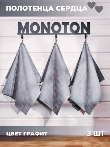 Комплект полотенец из трех штук, цвета графит. Комбинированая ткань, состоит из 100% хлопка, полотенца представлены в размере 45 х 70 см. имеют рисунок в форме сердечка. Хлопковые полотенца отлично впитывают и быстро сохнут, модель отличается повышенной плотностью (240 г/кв.м.) и универсальным размером 45*70. Тактильно приятные, безворсовые полотенчики удобнее, чем салфетки, большие тряпки или маленькие тряпочки: незаменимый кухонный атрибут всегда под рукой, если нужно вытереть руки или смахнуть крошки со стола. По середине длинной стороны имеются цветные петельки из натурального хлопка, для удобства подвешивания, они исполнены в тон изделия. Полотенца не дают усадку после стирки и расчитаны на многочисленные стрики. Универсальные, с удобной петлей отлично подойдут для ежедневной уборки, помогут очистить столовые приборы, стекло и посуду, убрать ванну и протереть от воды душевую кабину. Полотенца универсальные, подойдут не только для кухни, но для рук и лица. Полотенца не вызывают аллергии, подойдут для всей семьи: для родителей: мамы и папы, бабушки. Стильные и уютные полотенчики разных цветов станут хорошим подарком для любимой девушки, для жены, для мамы, сестры или подруги на Новый год или Рождество, 8 Марта или День святого Валентина, а также мужчине на 23 февраля. Полотенца кухонные станут прекрасным подарком на новоселье, свадьбу или лаконичным декором или прекрасным дополнением интерьера любой кухни. Сделано в России, производство г. Иваново, текстиль Иваново, Ивановский текстиль. У нас есть акции и распродажи, вы можете купить наши товары в подарок со скидкой!