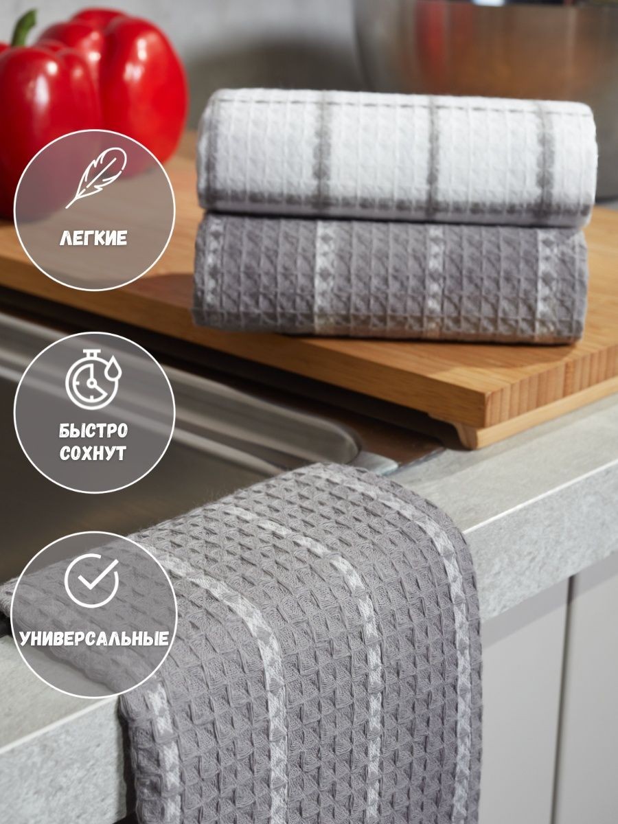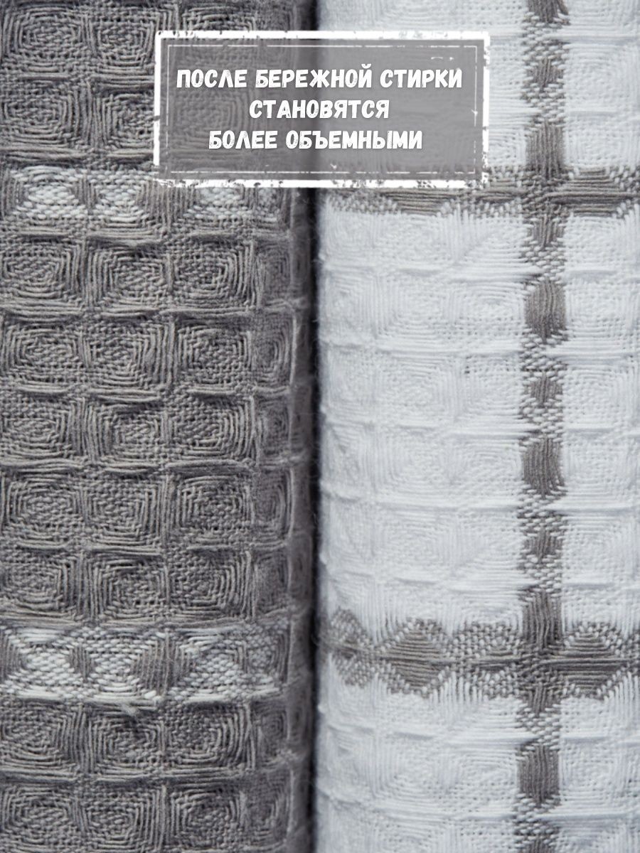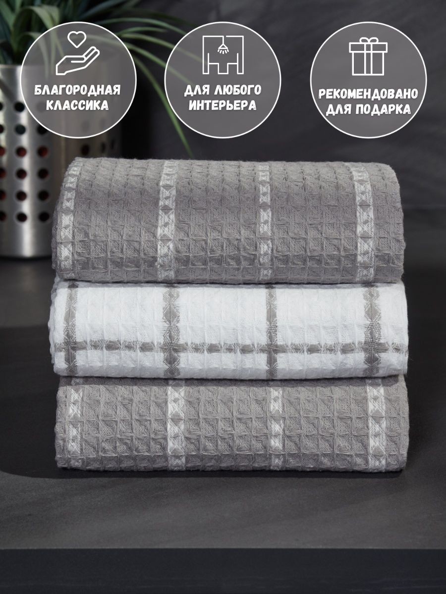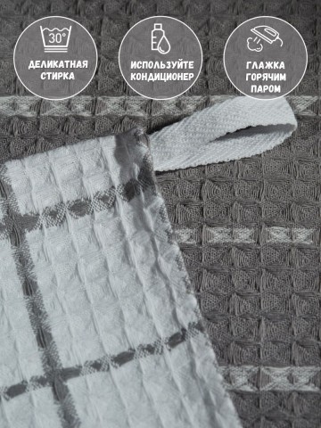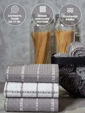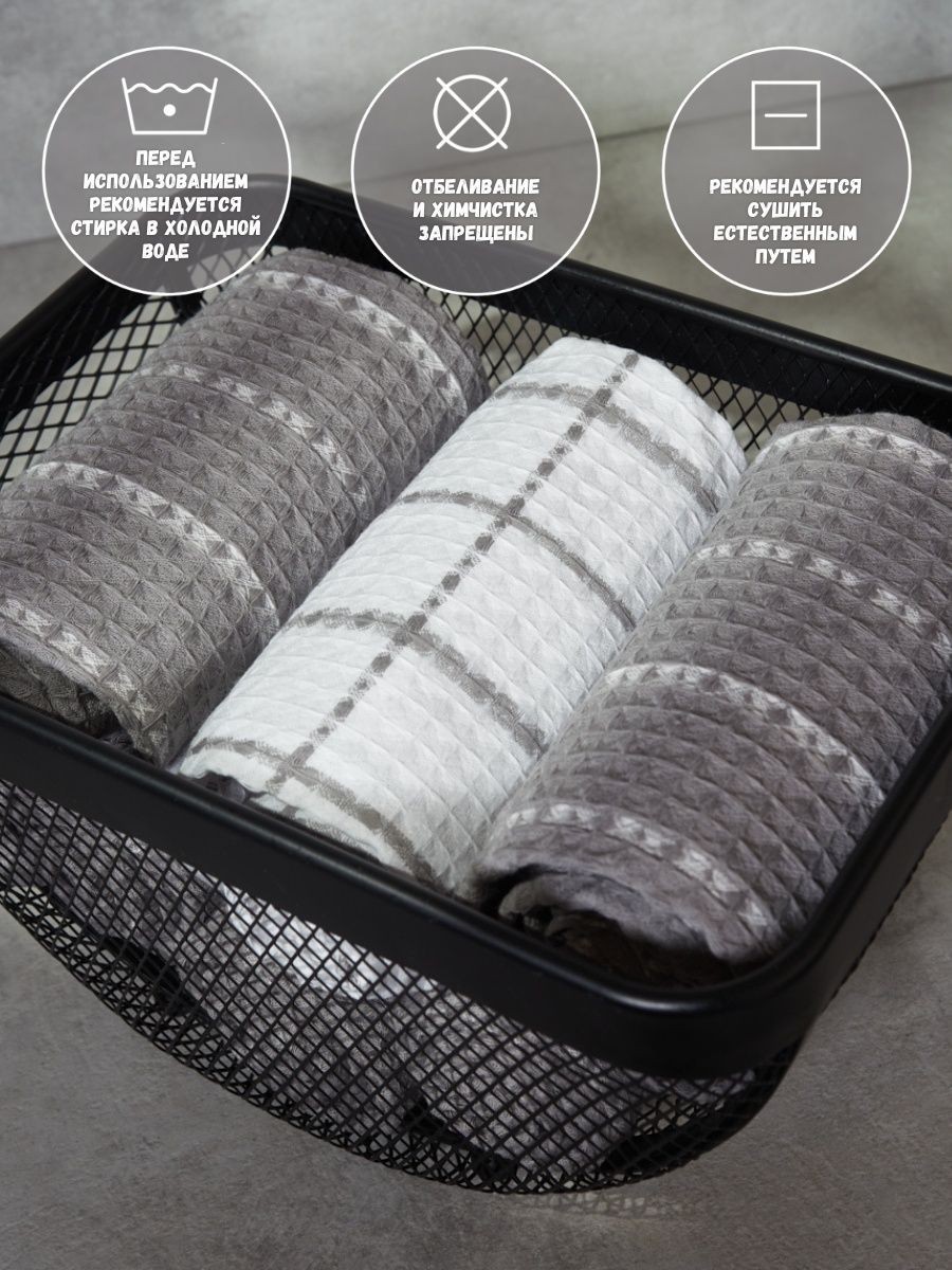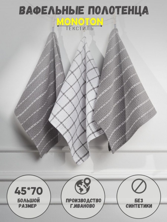 Мягкие и уютные полотенца от компании MONOTON-Текстиль в комплекте из 3-х штук станут нежным аксессуаром, радующим взгляд хозяйки на кухне и надежным помощником в ежедневной уборке. Изделие выполнено в большом размере 45 х 70 см, дополнено удобной петелькой для подвешивания. Модель украшена рисунком в клетку или полоску, представлена в разнообразных сочетаниях универсальной палитры, которая подойдет к любому интерьеру. Многоразовые помощники в борьбе за чистоту выполнены из 100% хлопка: они мягкие и легкие, дышащие и впитывающие, быстро высыхающие. Хлопковое полотно представляет собой рельефные ячейки с особым вафельным плетением, вафельное полотно изготовлено на оборудовании для жаккардовых полотен, его плотность 200 г/кв.м. Красивые домашние полотенчики с удобной петлей представлены в наборах, сочетающих изделия разного или одинакового цвета: в серых и белых, светло - серых сочетаниях, с разным рисунком: в клетку или полоску. Безворсовые полотенчики в клеточку незаменимы для уборки, качественные принадлежности помогут очистить столовые приборы, стекло и посуду, протереть от воды столешницу или душевую кабину. Быстросохнущие аксессуары в фактурную и декоративную клетку заменят салфетки, большие тряпки и маленькие тряпочки для уборки. Мягкие и уютные полотенца можно использовать для рук и лица в ванной комнате. Приятные домашние принадлежности для уборки и ухода приведут в порядок дом и дачу и другие помещения. Эксклюзивный узор «вафли» в нежном декоре и эксклюзивном дизайне понравятся взрослым и детям. Стильный комплект из трех предметов станет необычным, но приятным подарком для любой женщины: жены или подруги, любимой девушки, сестры или коллеги, мамы или тещи на Новый год или Рождество, 8 Марта или День святого Валентина. Станет прекрасным новогодний декор и изящно впишется в любой интерьер кухни. Красивые полотенца из текстиля будет приятно получить и мужчинам: папе или дедушке, брату или мужу на день рождения или юбилей, на годовщину или 23 Февраля, на любой праздник или просто так без повода, чтобы порадовать близкого человека красивым и качественным презентом. Рекомендации по уходу: бережная стирка при температуре не выше 30 градусов. Перед применением рекомендуется прополоскать в холодной воде с кондиционером. Сделано в России, г. Иваново. У нас есть акции и распродажи, вы можете купить наши товары в подарок со скидкой!