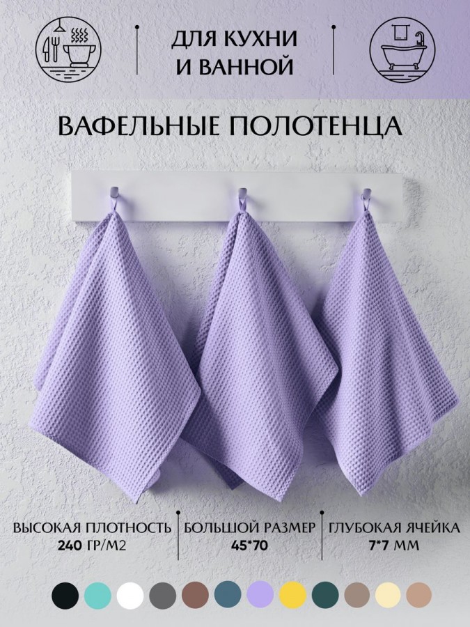 Полотенца для кухни и ванной комнаты из натурального хлопка, представлены в различных цветах. В комплект входит 3 больших полотенца размером. Эти полотенца являются универсальными и подходят, как для использования на кухне, так и в ванной комнате. Они отличаются высокой впитывающей способностью и быстрым высыханием. Этот набор предлагает стильное и практичное решение для ваших повседневных потребностей, а разнообразие цветов позволяет подобрать полотенца, которые гармонично дополнят ваш интерьер.