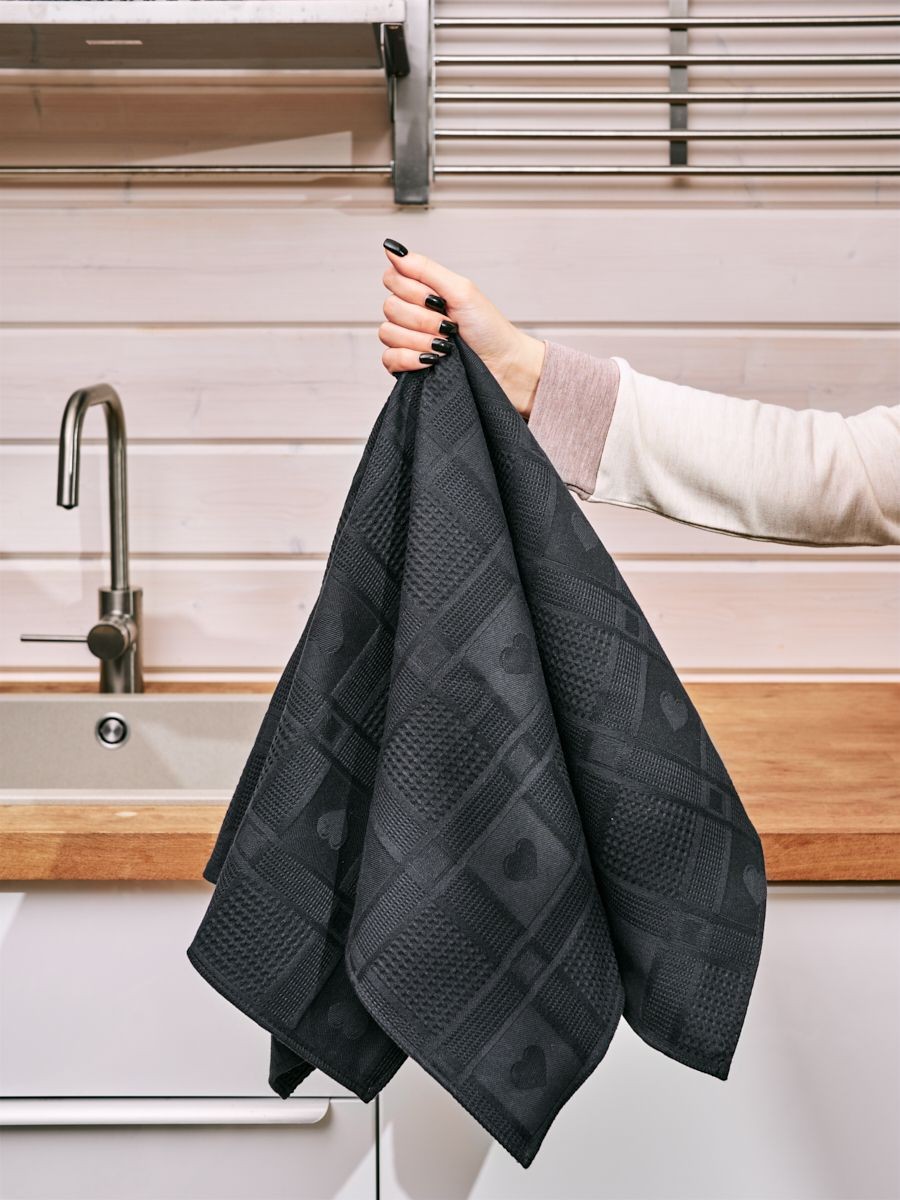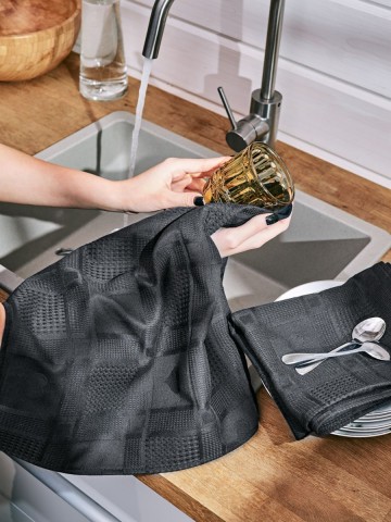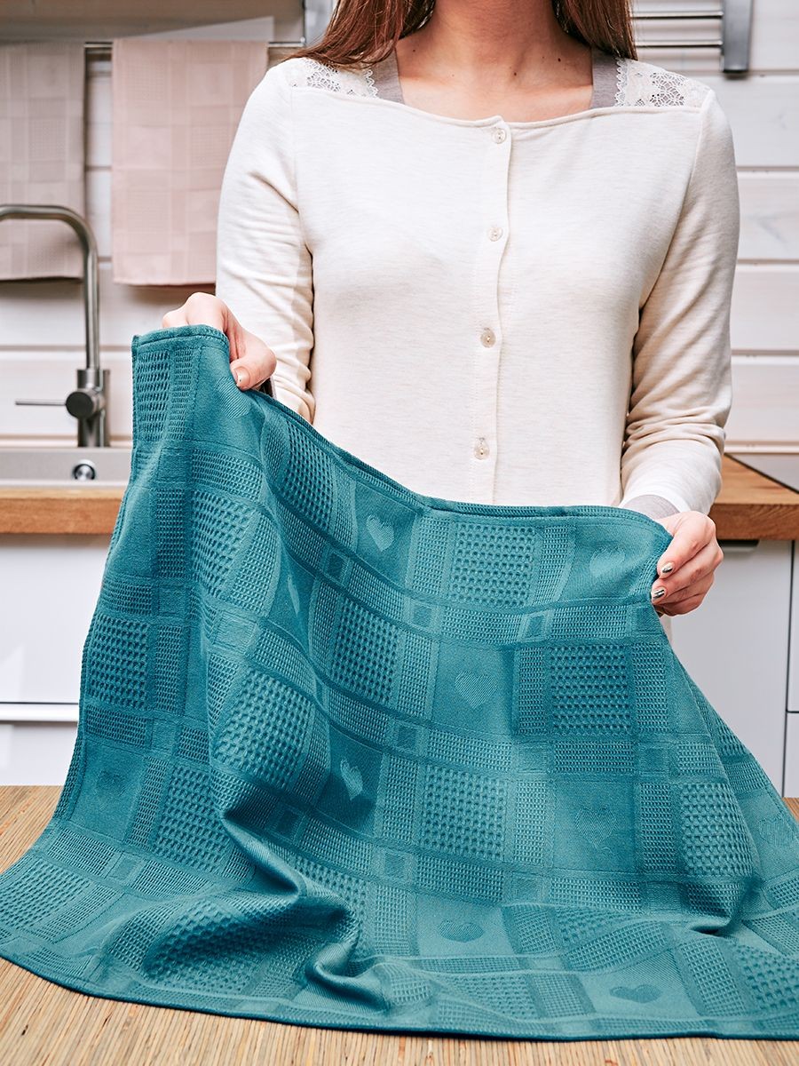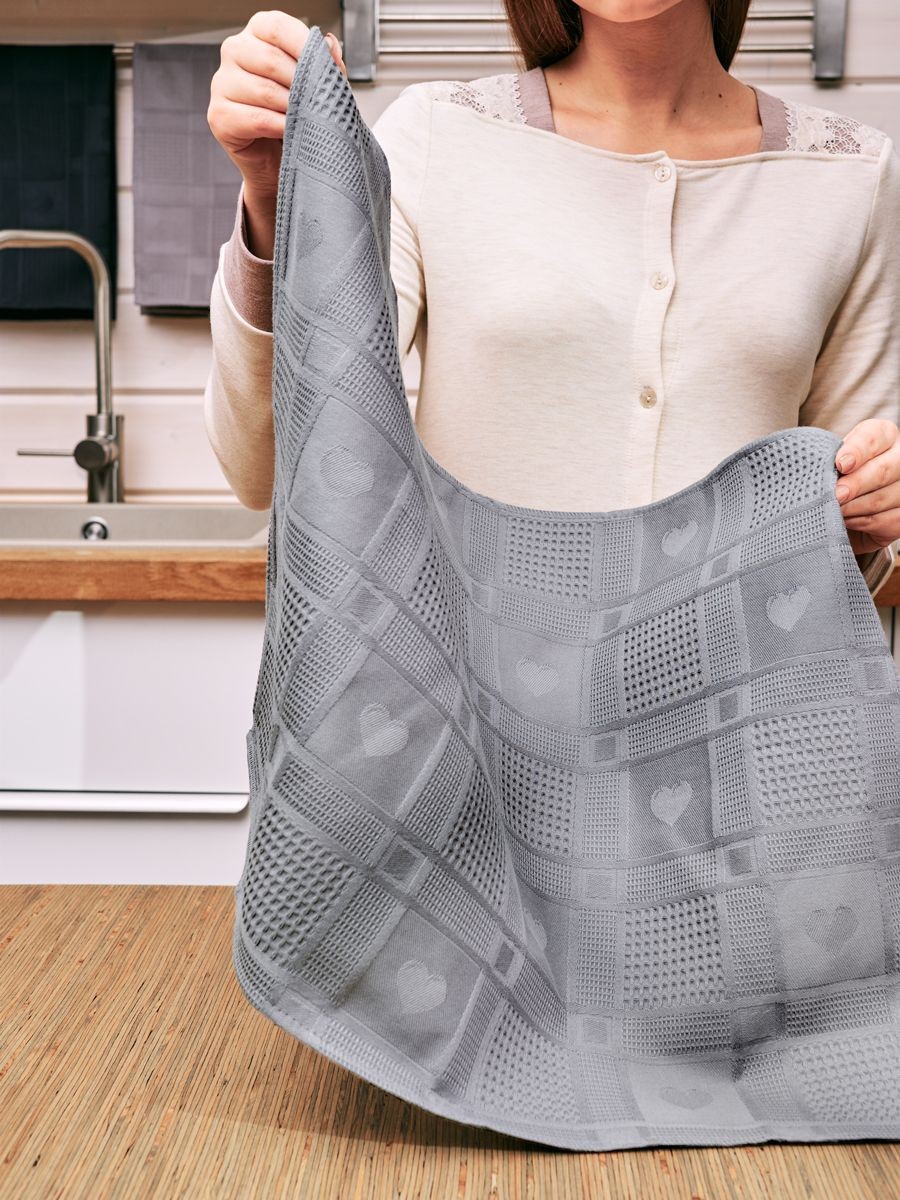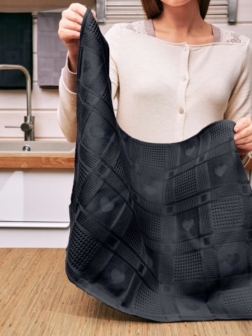 Набор полотенец из трех штук, цвета: изумруд/графит/черный. Комбинированая ткань, состоит из 100% хлопка, полотенца представлены в размере 45 х 70 см. имеют рисунок в форме сердечка. Хлопковые полотенца отлично впитывают и быстро сохнут, модель отличается повышенной плотностью (240 г/кв.м.) и универсальным размером 45*70. Тактильно приятные, безворсовые полотенчики удобнее, чем салфетки, большие тряпки или маленькие тряпочки: незаменимый кухонный атрибут всегда под рукой, если нужно вытереть руки или смахнуть крошки со стола. По середине длинной стороны имеются цветные петельки из натурального хлопка, для удобства подвешивания, они исполнены в тон изделия. Полотенца не дают усадку после стирки и расчитаны на многочисленные стрики. Универсальные, с удобной петлей отлично подойдут для ежедневной уборки, помогут очистить столовые приборы, стекло и посуду, убрать ванну и протереть от воды душевую кабину. Полотенца универсальные, подойдут не только для кухни, но для рук и лица. Полотенца не вызывают аллергии, подойдут для всей семьи: для родителей: мамы и папы, бабушки. Стильные и уютные полотенчики разных цветов станут хорошим подарком для любимой девушки, для жены, для мамы, сестры или подруги на Новый год или Рождество, 8 Марта или День святого Валентина, а также мужчине на 23 февраля. Полотенца кухонные станут прекрасным подарком на новоселье, свадьбу или лаконичным декором или прекрасным дополнением интерьера любой кухни. Сделано в России, производство г. Иваново, текстиль Иваново, Ивановский текстиль. У нас есть акции и распродажи, вы можете купить наши товары в подарок со скидкой!