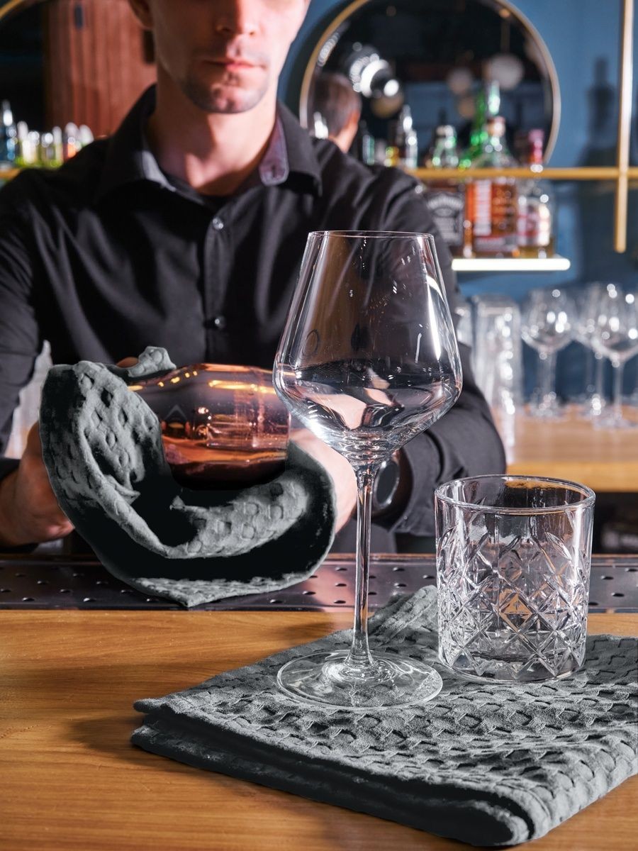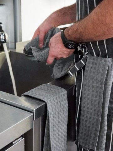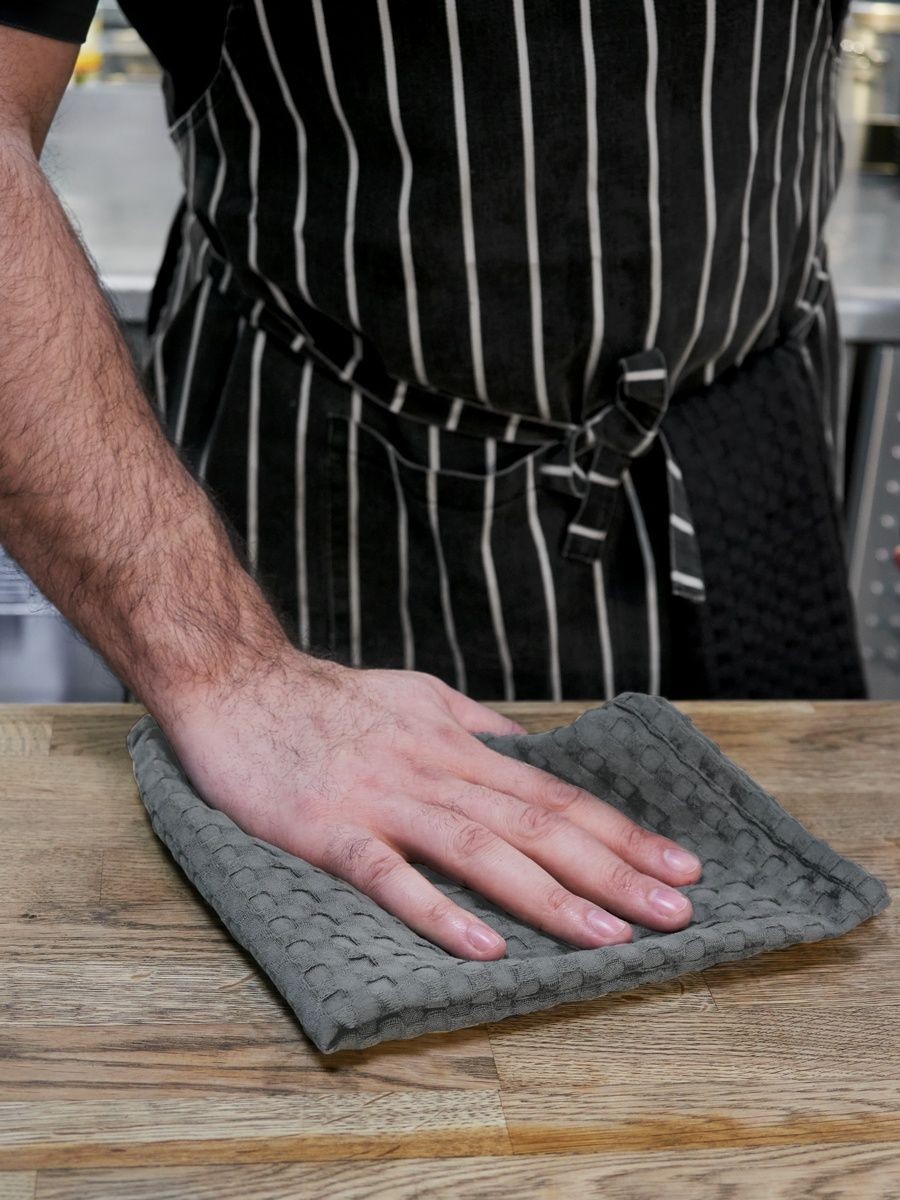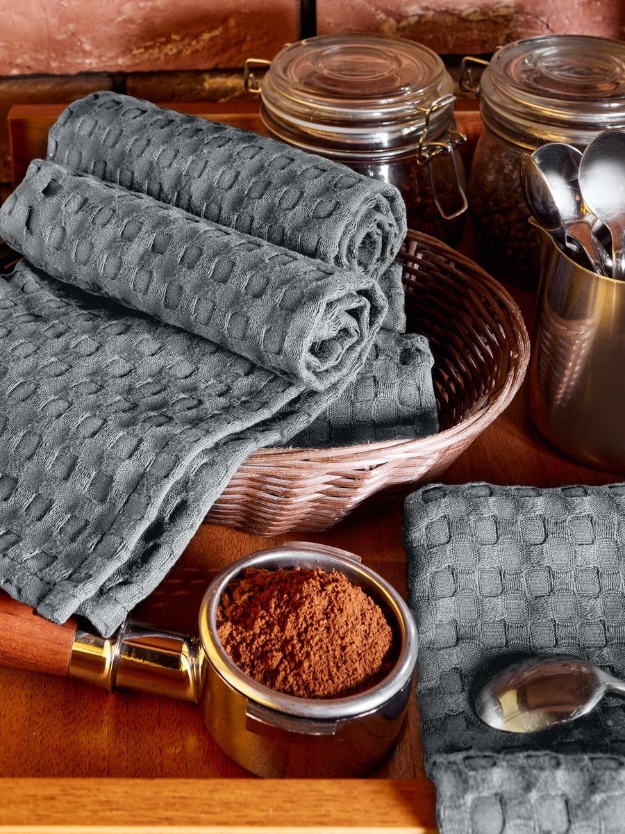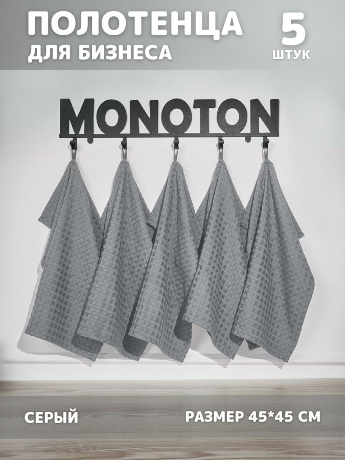 Набор полотенец 5 шт 45 см х 45 см, полотенца. Полотенца для бизнеса – текстильная продукция, имеющая широчайшую сферу применения. Бренд MONOTON-Текстиль предлагает широкий ассортимент таких изделий, где особое положение занимают вафельные кухонные полотенца, представленные в формате однотонного комплекта, состоящего из пяти единиц, имеющих размеры 45 на 45 см. Изделия отличаются высоким качеством и рассчитаны на длительный срок службы, что достигается за счёт использования в производстве натурального хлопка (100%) и полного соблюдения технологии. Высокая гигроскопичность, это свойство достигается за счёт особой фактуры, благодаря которой полотенце кухонное вафельное может впитать невероятное количество влаги. И при этом, оно высохнет гораздо быстрее, чем его аналоги, изготовленные из других материалов. Этим свойством обладают полотенца протирочные! Особенно, если речь идёт о керамической, стеклянной, металлической посуде или о зеркальных и глянцевых поверхностей, ткань для кухонных полотенец, на 100% состоящая из натурального хлопка .Чтобы порвать любое изделие из вафельного полотна, нужно приложить невероятную силу! Износостойкость, даже если подвергать ежедневно этой процедуре изделия из вафельного полотна, то с ними ничего не случится. Кухонные полотенца для ресторанов и кафе. Каким должно быть полотенце для ресторана? Привлекательным внешне, по максимуму оригинальным, износостойким, простым в уходе, быстросохнущим, удобным в применении. Набор из пяти вафельных полотенец MONOTON-Текстиль полностью соответствует всем этим критериям. Изделия имеют оригинальный дизайн, и это касается не только цветового решения,но и фактуры. Особый шарм придает именно фактура, поскольку ячейки достаточно крупные и каждая из них имеет размер 1×1 см. Кухонные полотенца для кафе и ресторанов изготовлены из вафельного полотна, имеющего плотность 200 г/м². Это считается оптимальным значением для изделий подобного плана. Что касается сферы применения именно в условиях заведений общепита, то здесь многое зависит от формата кафе или ресторана. Кухонные полотенца для В2В используются не только в местах приготовления пищи, потому что и ее подача предполагает применение этих текстильных изделий. Для этого достаточно вспомнить о существовании такого термина, как осибори. Горячие или холодные полотенца теперь встречаются не только в ресторанах японской кухни, но и в других заведениях, у руководства которых есть стремление по максимуму удивить своих клиентов и предложить им дополнительный сервис. Вафельные полотенца идеально подходят для протирания барной стойки, посуды, мебели; вытирания рук и даже сервировки столов! Использование вафельных полотенец в других бизнес-сферах Салоны красоты, фитнес-центры, парикмахерские, гостиницы, массажные кабинеты, включая частные клиники,диагностические и профилактические центры, компании, специализирующиеся на перевозке пассажиров и прочие субъекты бизнеса используют, как многоразовый текстиль, так и одноразовые изделия, которые принято называть расходниками. Несложно догадаться, как и где можно использовать набор полотенец из хлопка. К примеру, их можно разместить в туалете, чтобы персонал или клиенты могли вытереть руки после мытья рук. Изделие, имеющее размер 45 на 50 см идеально подходит для индивидуально