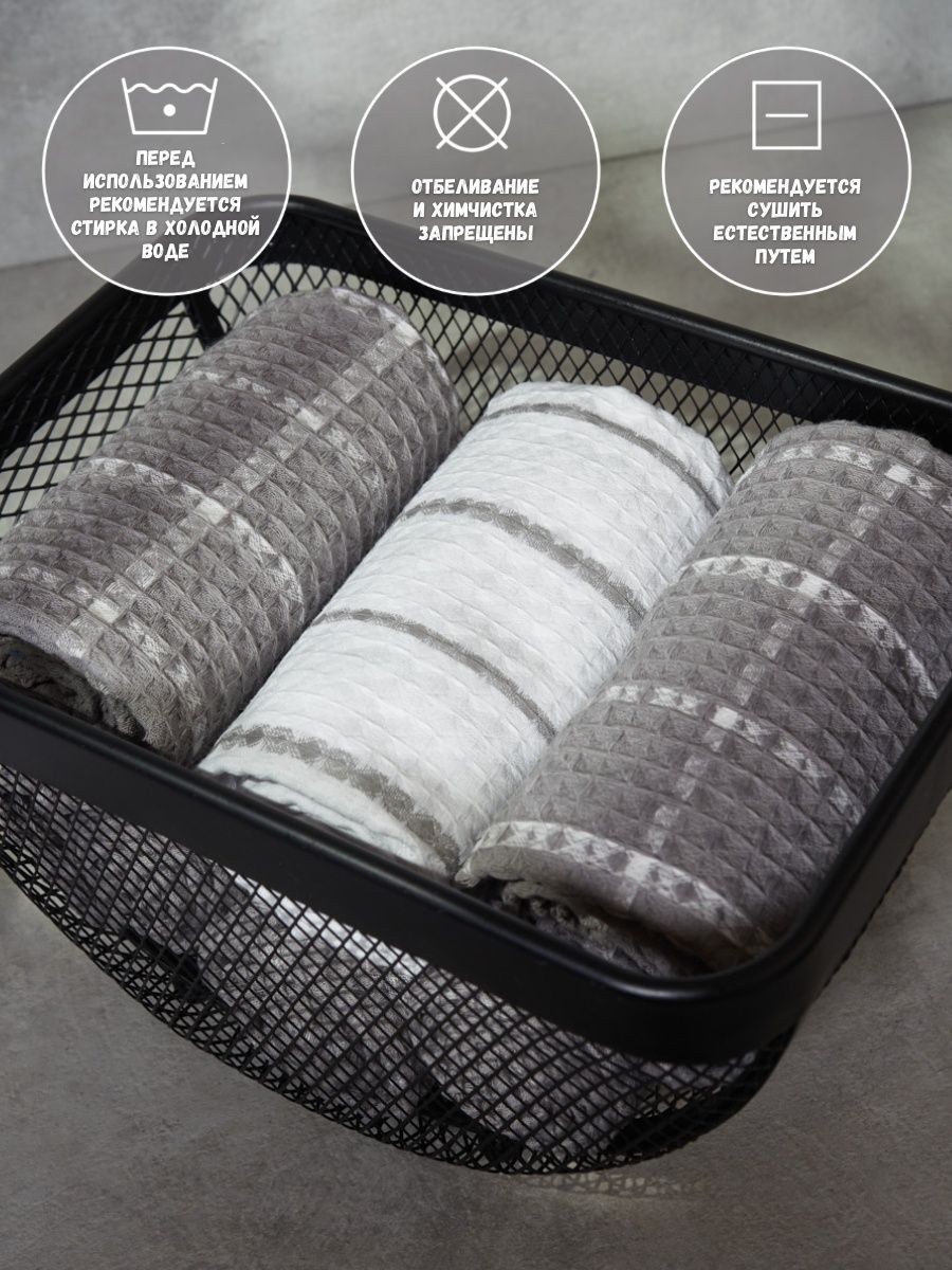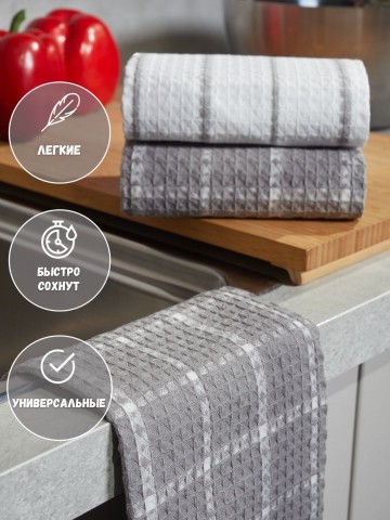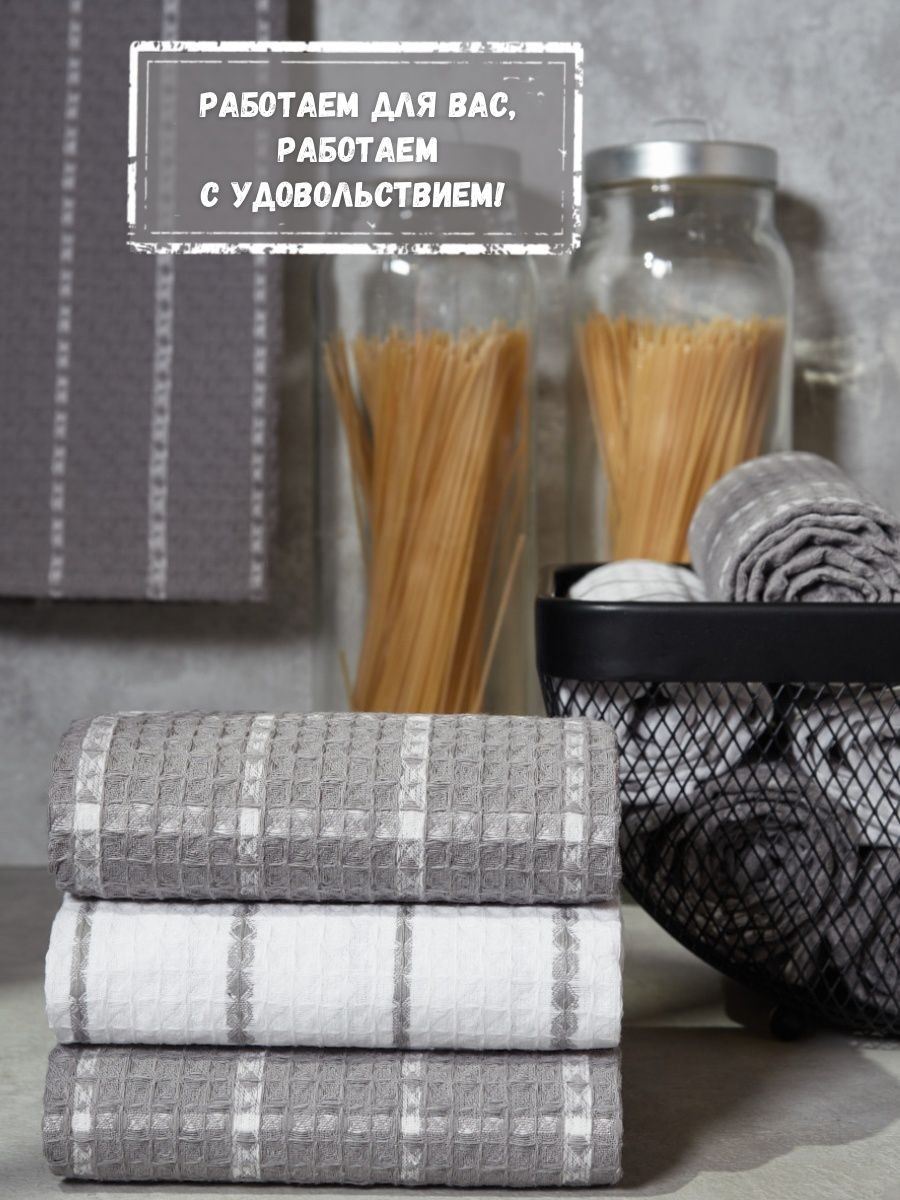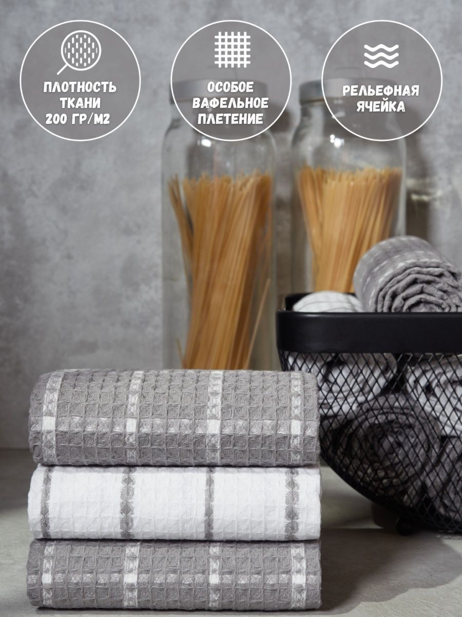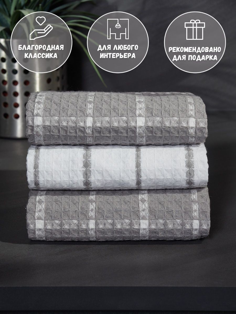 Мягкие и уютные полотенца от компании MONOTON-Текстиль в комплекте из 3-х штук станут нежным аксессуаром, радующим взгляд хозяйки на кухне и надежным помощником в ежедневной уборке. Изделие выполнено в большом размере 45 х 70 см, дополнено удобной петелькой для подвешивания. Модель украшена рисунком в клетку или полоску, представлена в разнообразных сочетаниях универсальной палитры, которая подойдет к любому интерьеру. Многоразовые помощники в борьбе за чистоту выполнены из 100% хлопка: они мягкие и легкие, дышащие и впитывающие, быстро высыхающие. Хлопковое полотно представляет собой рельефные ячейки с особым вафельным плетением, вафельное полотно изготовлено на оборудовании для жаккардовых полотен, его плотность 200 г/кв.м. Красивые домашние полотенчики с удобной петлей представлены в наборах, сочетающих изделия разного или одинакового цвета: в серых и белых, светло - серых сочетаниях, с разным рисунком: в клетку или полоску. Безворсовые полотенчики в клеточку незаменимы для уборки, качественные принадлежности помогут очистить столовые приборы, стекло и посуду, протереть от воды столешницу или душевую кабину. Быстросохнущие аксессуары в фактурную и декоративную клетку заменят салфетки, большие тряпки и маленькие тряпочки для уборки. Мягкие и уютные полотенца можно использовать для рук и лица в ванной комнате. Приятные домашние принадлежности для уборки и ухода приведут в порядок дом и дачу и другие помещения. Эксклюзивный узор «вафли» в нежном декоре и эксклюзивном дизайне понравятся взрослым и детям. Стильный комплект из трех предметов станет необычным, но приятным подарком для любой женщины: жены или подруги, любимой девушки, сестры или коллеги, мамы или тещи на Новый год или Рождество, 8 Марта или День святого Валентина. Станет прекрасным новогодний декор и изящно впишется в любой интерьер кухни. Красивые полотенца из текстиля будет приятно получить и мужчинам: папе или дедушке, брату или мужу на день рождения или юбилей, на годовщину или 23 Февраля, на любой праздник или просто так без повода, чтобы порадовать близкого человека красивым и качественным презентом. Рекомендации по уходу: бережная стирка при температуре не выше 30 градусов. Перед применением рекомендуется прополоскать в холодной воде с кондиционером. Сделано в России, г. Иваново. У нас есть акции и распродажи, вы можете купить наши товары в подарок со скидкой!