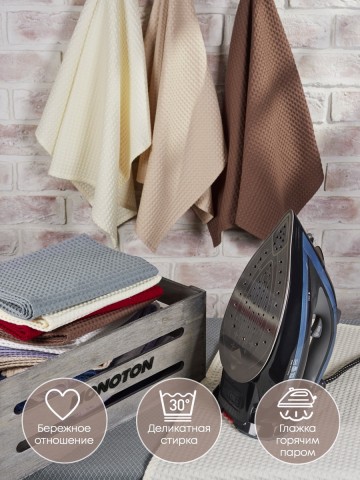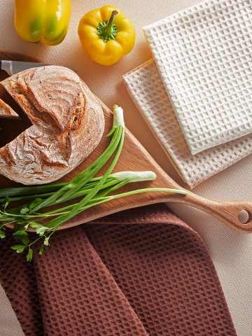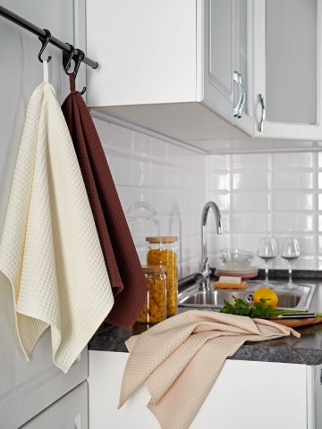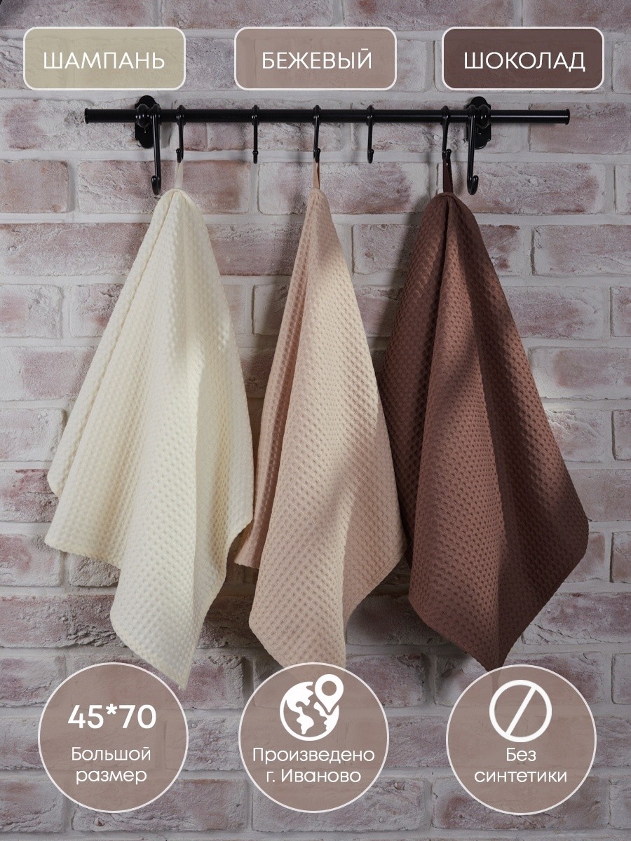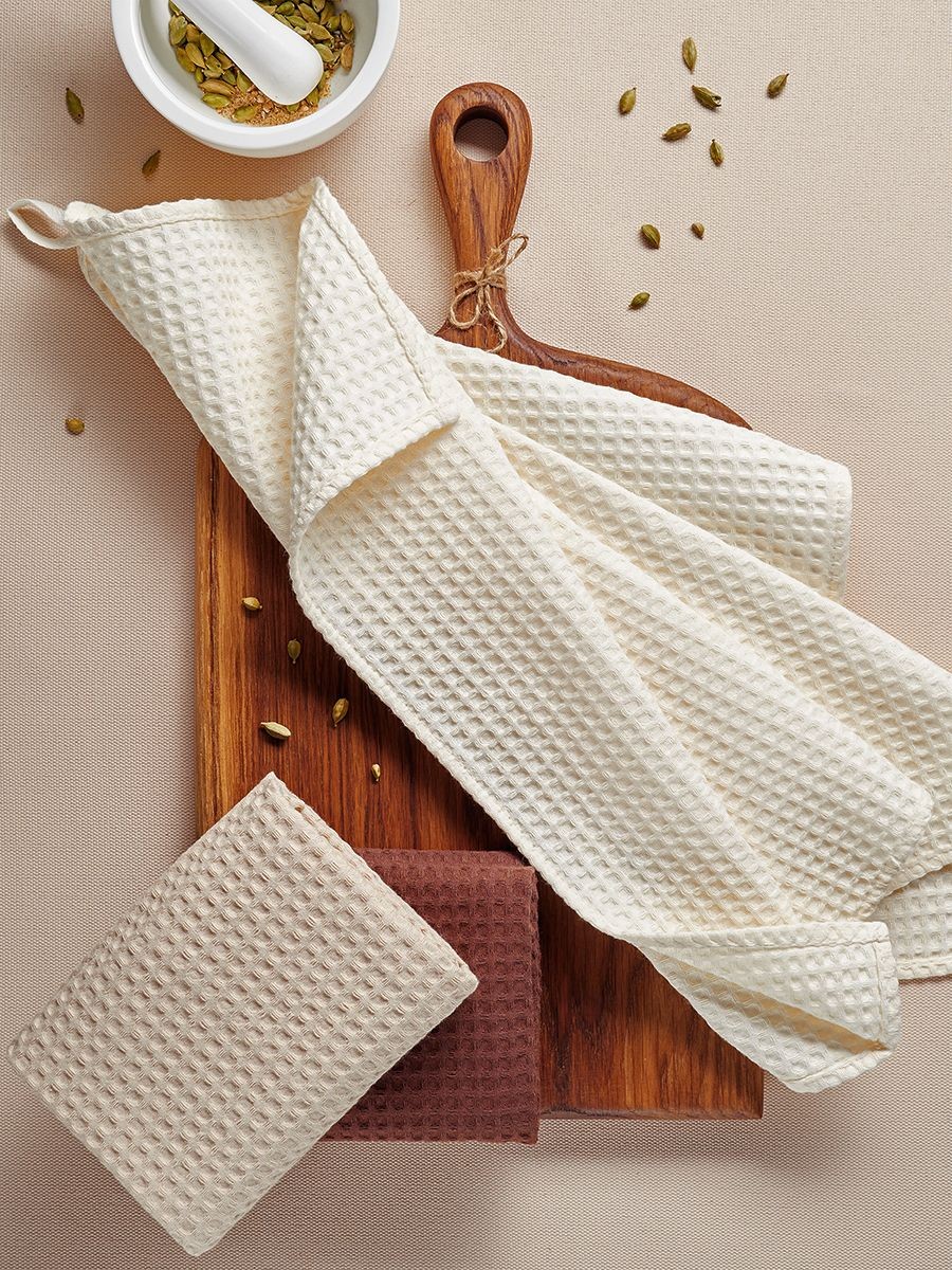 Набор вафельных полотенец из трех штук от компании MONOTON-Текстиль представлен в стильных сочетаниях топовых оттенков, которые украсят вашу кухню. Быстросохнущий аксессуар выполнен из 100% хлопка в размере 45 х 70 см. Хлопковые полотенца отлично впитывают и быстро сохнут, модель отличается увеличенной плотностью (240 г/кв.м.) и универсальным размером квадратной ячейки (7 х 7 мм). Тактильно приятные, безворсовые полотенчики удобнее, чем салфетки, большие тряпки или маленькие тряпочки: незаменимый кухонный атрибут всегда под рукой, если нужно вытереть руки или смахнуть крошки со стола. По середине длинной стороны имеются цветные петельки из натурального хлопка, для удобства подвешивания, они исполнены в тон изделия. Стильные хлопковые полотенчики представлены в красивых цветовых сочетаниях. Со вкусом подобранные сочетания и нежная палитра украсят вашу кухню, станут приятной деталью интерьера для кухни, которая будет радовать вас каждый день. Универсальные многоразовые полотенца с удобной петлей отлично подойдут для ежедневной уборки, помогут очистить столовые приборы, стекло и посуду, убрать ванну и протереть от воды душевую кабину. Вафельные полотенца с тактильно приятной клеткой подойдут для рук и лица, их можно повесить в ванной около зеркала. Домашние или дачные, удобные аксессуары в клетку для наведения чистоты во всем доме подойдут к любому интерьеру, гармоничное сочетание цветов и нежный лаконичный декор понравятся взрослым и детям, женщинам и мужчинам, подросткам, девочкам и мальчикам. Качественный текстиль подойдет для всей семьи: для родителей: мамы и папы, бабушки. Стильные и уютные полотенчики в комплекте из трех предметов разных цветов станут хорошим подарком для любимой девушки, для жены, для мамы, сестры или подруги на Новый год или Рождество, 8 Марта или День святого Валентина, а также мужчине на 23 февраля. Полотенца кухонные станут прекрасным подарком на новоселье, свадьбу или лаконичным декором или прекрасным дополнением интерьера любой кухни. Сделано в России, производство г. Иваново, текстиль Иваново, Ивановский текстиль. У нас есть акции и распродажи, вы можете купить наши товары в подарок со скидкой!